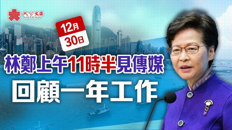 大公文匯全媒體報道,行政長官林鄭月娥今日(30日)上午11時30分,在添馬添美道二號政府總部地下演講廳會見傳媒,回顧2021年的工作。