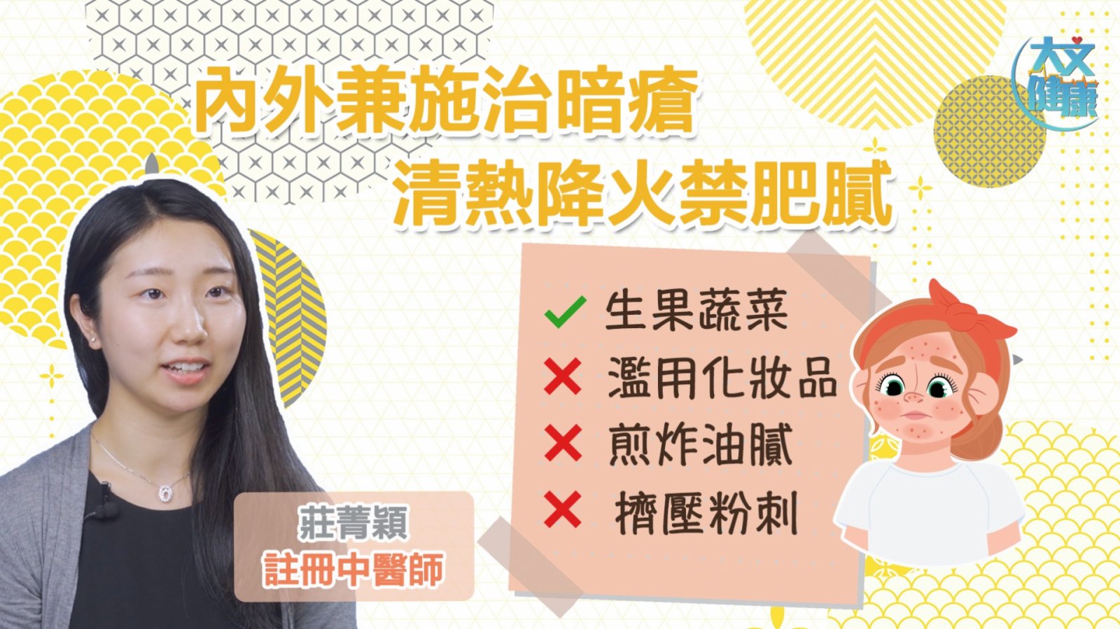 暗瘡,中醫稱為粉刺,有丘疹、膿皰、結節及囊腫等症狀,多見於面部及胸背位置。因素體陽熱偏盛,加上生機旺盛,青春期男女常受暗瘡困擾,影響外觀。註冊中醫師莊菁穎表示,中醫對治療粉刺可分內治與外治,有「消」、「托」、「補」法,或者中藥外敷、針刺等方法。她更列出患者在飲食、護膚方面的注意事項,以助紓解病情。