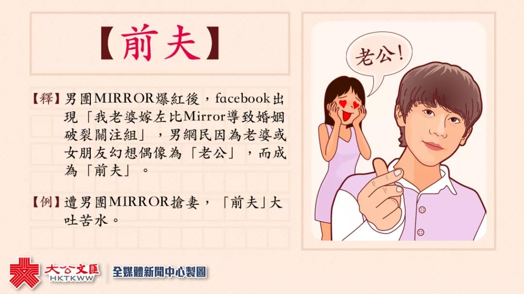 【前夫】:「前夫」一詞相信大家絕不陌生,今年人氣潮語中,大部分都是源於明星語錄、電視節目等。