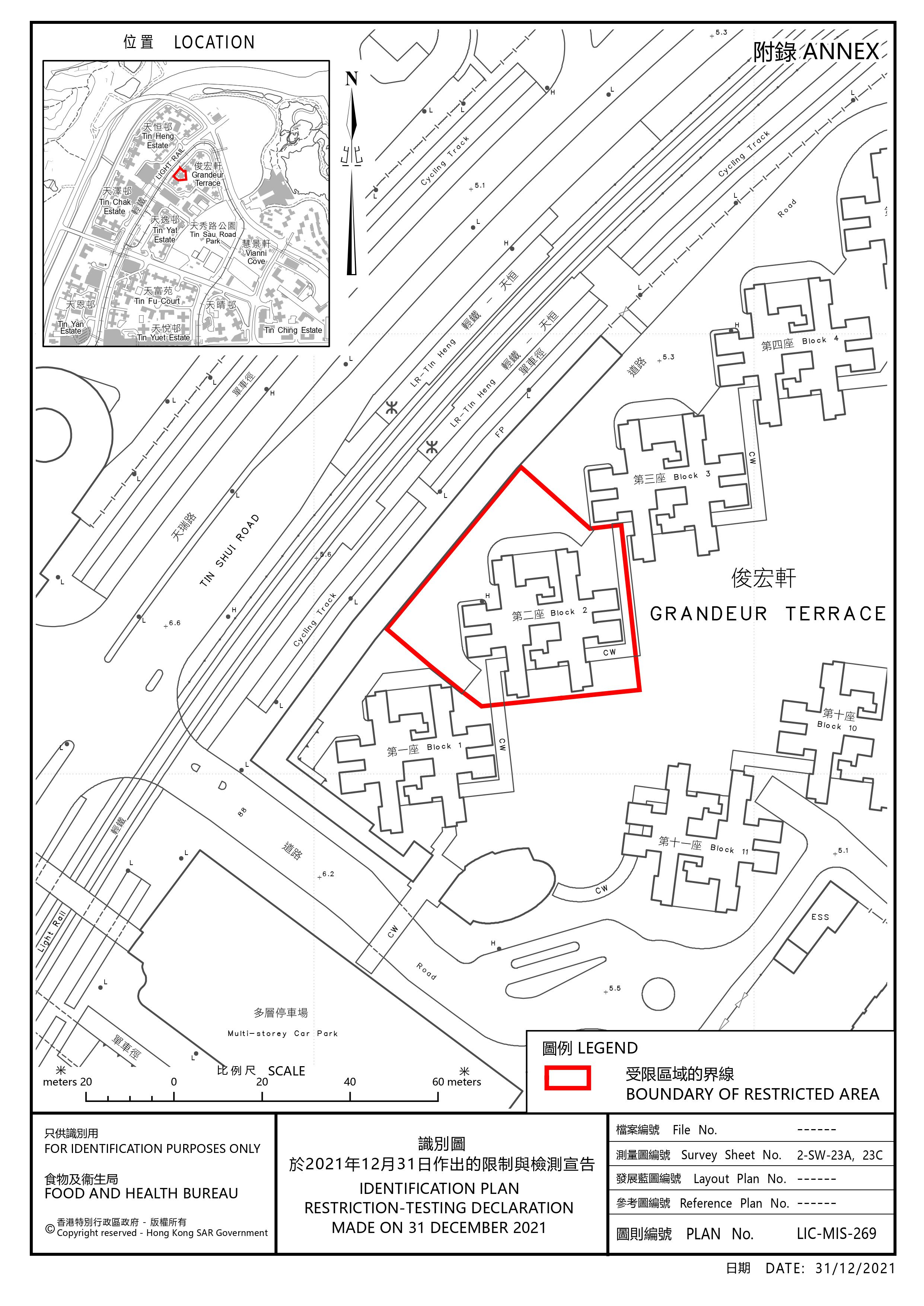 大公文匯全媒體報道,本港新冠肺炎疫情持續,今日(31日)新增19宗新冠病毒個案。初步陽性個案則有16宗,其中1人為機場女地勤人員。政府晚上7時起,將天水圍俊宏軒第二座列為「受限區域」,大廈內人士須留在其處所並接受強制檢測。受檢人士須在其處所等候,直至「受限區域」內所有已識別的受檢人士完成檢測,而相關檢測結果亦已獲大致確定,方可離開其處所。政府目標是在明日(2022年1月1日)上午約7時完成此行動。政府已經於「受限區域」內設立臨時採樣站,並要求受檢人士於明日凌晨1時前接受檢測。