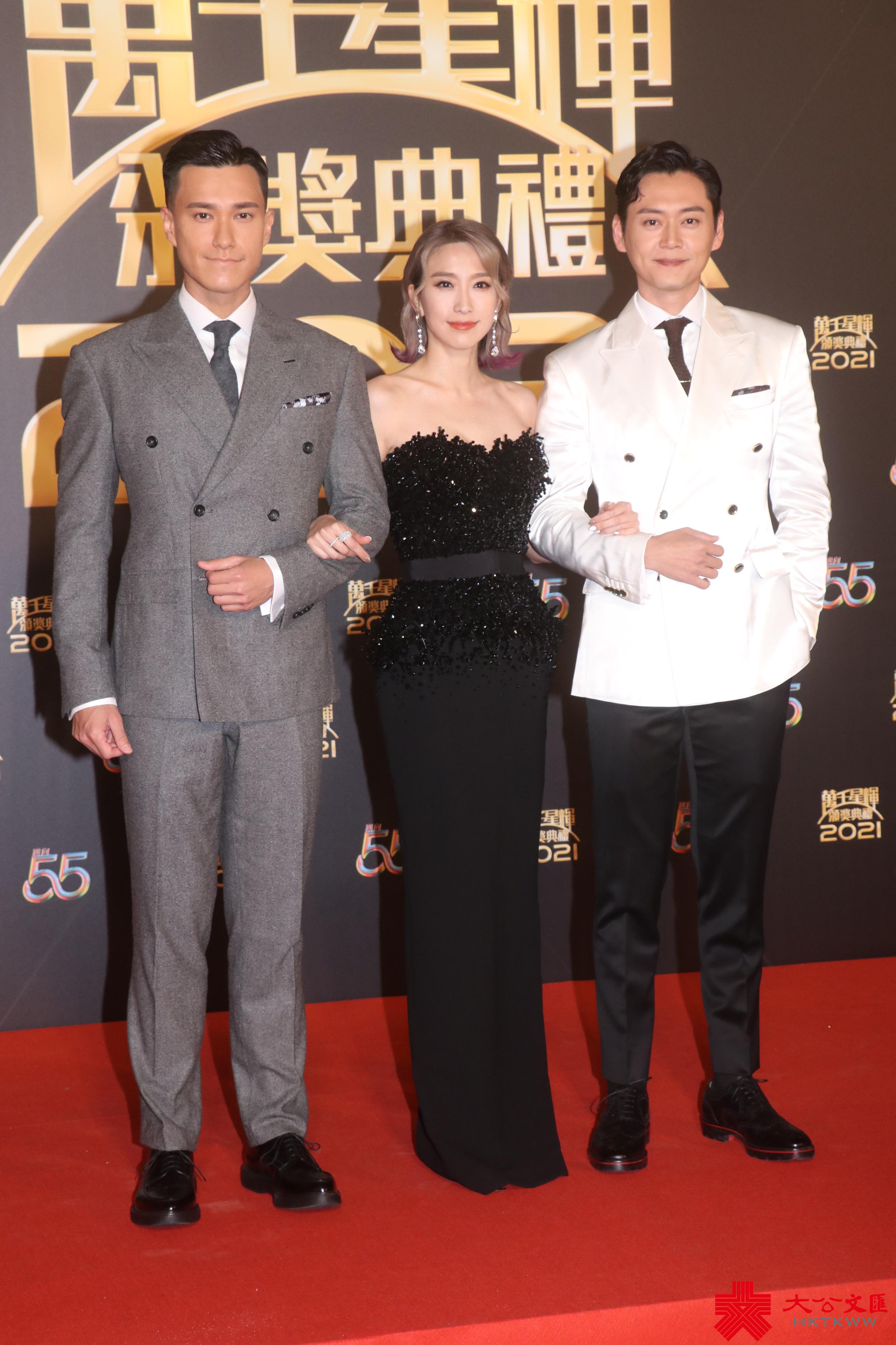鍾嘉欣壓軸登場,她開心表示已有6年沒有參加過這類場合,加上公司安排坐古董車入場,落車時見到好多燈光和觀眾,確是有點不習慣,但很有新鮮感,笑言現在最多都是見BB車。說到身上的打扮,嘉欣只求着得舒服去享受這晚頒獎禮,所以要求造型師要舒服和溫暖一些,至於身在加拿大的老公,答應於當地時間凌晨4點會起身睇電視捧場,不過女兒太細會繼續睡覺,而身在香港的細仔便交由朋友照顧。嘉欣這次回港,不停約見好友,一下子已增了10磅,預計處理完私事後,於兩周後返回加國,鑒於現時加國疫情有爆發危機,她有為此膽心。此行有否再斟拍劇,嘉欣只答「將來先算」,有傳《星空下的仁醫》班底再開劇,嘉欣就話落實先再講,現刻只想享受頒獎禮過程,因不知下次是什麼時候再來港。
