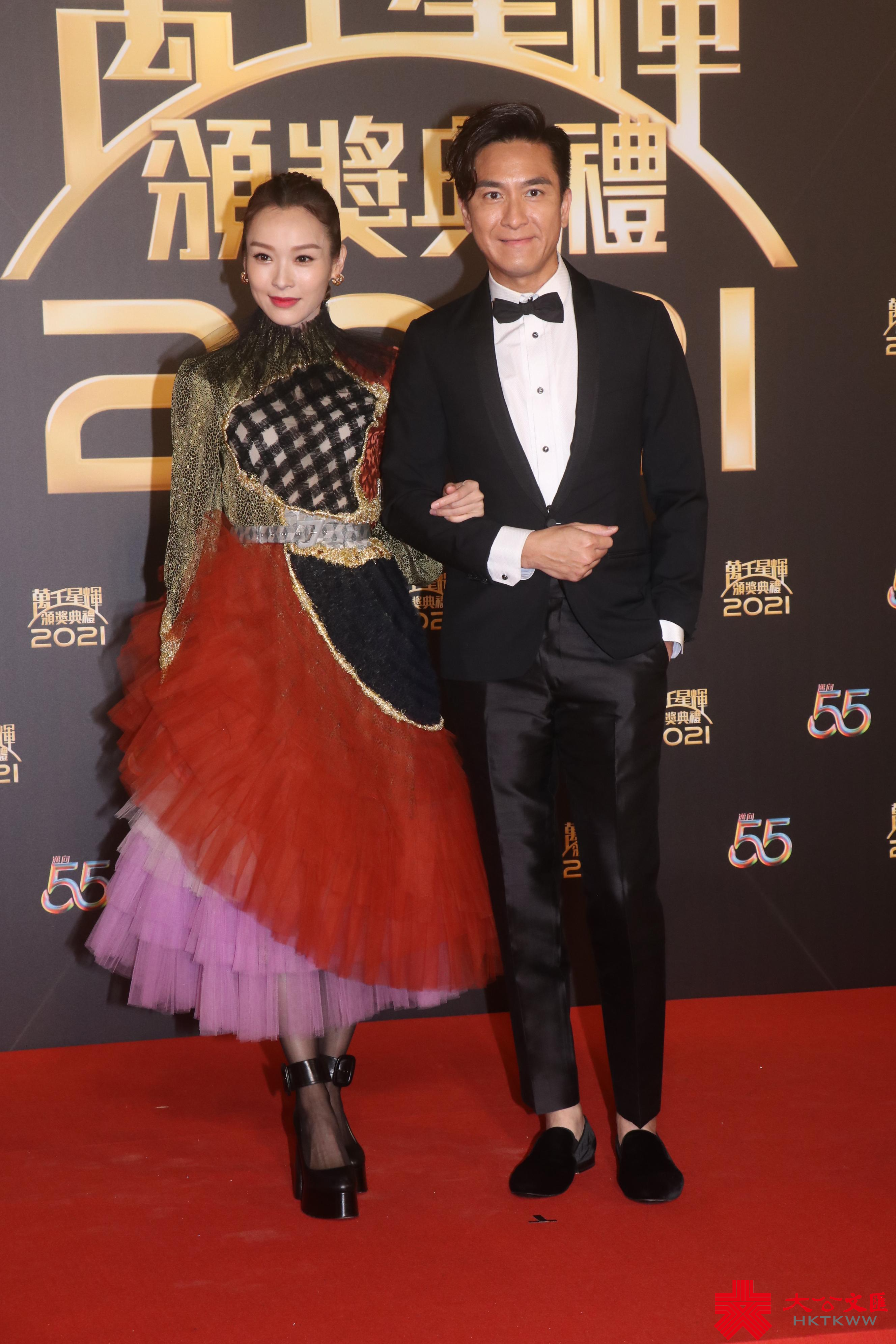 (香港文匯報 記者 吳文釗、李思穎)無綫《萬千星輝頒獎典禮2021》今晚(2日)在將軍澳電視城舉行,當晚先安排有份角逐獎項的小生花旦先行紅地毯進場,也是一眾靚女們爭妍鬥麗的好時機,加上今年新增設由現場傳媒投票選出的「最佳衣着奬」,大家在服裝造型上更顯心思,性感露背、型格高貴一應俱全,不少女藝人均以黑色打扮上場,最性感要算是「人妻」鍾嘉欣的透視閃Bra露出「事業線」,外披白色西裝褸,呈現若隱若現的性感,僅次是劉佩玥的紅色透視「谷胸」長裙,令豐滿上圍表露無遺,陳瀅「迫爆」上圍的露肩騷腿一樣有睇頭,黃智雯、林夏薇就以DEEP V、中門開窿搶分,而向來鍾意性感打扮使人眼前一亮的陳自瑤,當晚改變「戰術」行貴氣路線,穿上超級「傘」裙露背現身,馮盈盈則以紅色套裝的中性打扮,營造「真空」幻象。而初嘗踏上紅地毯的一班《聲夢》學員,以姚焯菲的初次性感穿上一襲白色露肩裙,散發少女感覺,仙氣十足,另有味道。經傳媒投票後,最佳衣着男、女藝人獎分別由陳瀅與譚俊彥奪得。