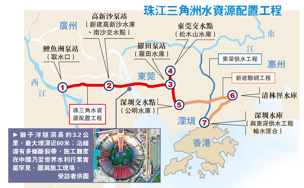 珠三角水資源配置工程設計相關負責人指出,該工程將有效改變目前東莞、深圳、香港從東江取水的單一供水格局。工程建成運行後,將通過源頭設保護區、建水資源實時預警預報機制、全封閉壓力流輸送、取水點水質監測等多項措施確保水質,意味着包括香港在內的粵港澳大灣區供水安全將得到進一步保障。