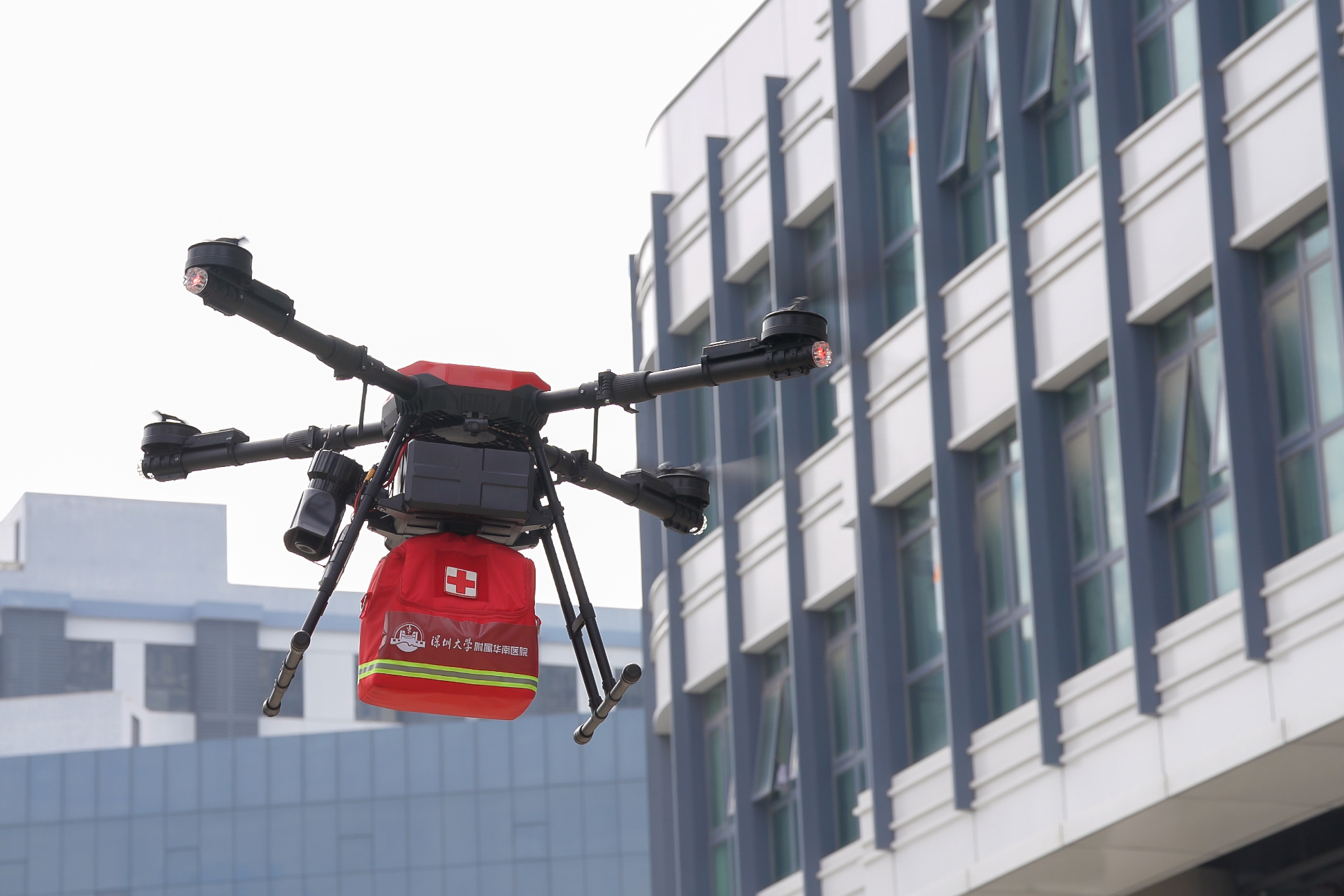 (大公文匯網 記者 郭若溪)1月6日,深圳大學附屬華南醫院舉行了一場針對突發心臟驟停場景開展的模擬試驗,廣場上一架攜帶有智慧眼鏡和AED等急救設備的無人機騰空而起,短短10分鐘便抵達了呼救的既定位置。施救路人迅速取下急救包,佩戴上智慧眼鏡,通過與急救指揮中心的實時可視化通訊,在急診科醫生的指引下,成功對患者實施了心肺復甦,並操作AED進行了搶救。這是該院在全國範圍內率先開展無人機應急智慧救援模擬試驗,為無人機在醫療急救甚至災難醫學的應用上,為海陸空多渠道急救通道的搭建提供了新的研發思路。