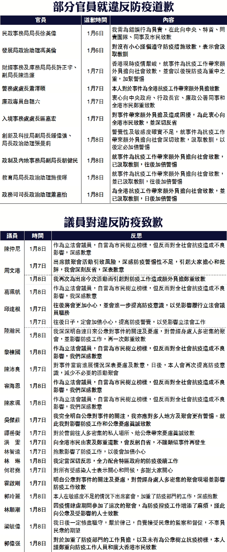 百人宴有超過180人出席,包括13名政府官員、20名立法會議員。衞生防護中心傳染病處首席醫生歐家榮表示,當晚9時半前離開宴會的人,一度因為楊子矜初確而被列為密切接觸者的人中,截至昨日早上有10人已被送至檢疫中心,他們稍後會獲撤銷檢疫令並離開檢疫中心。