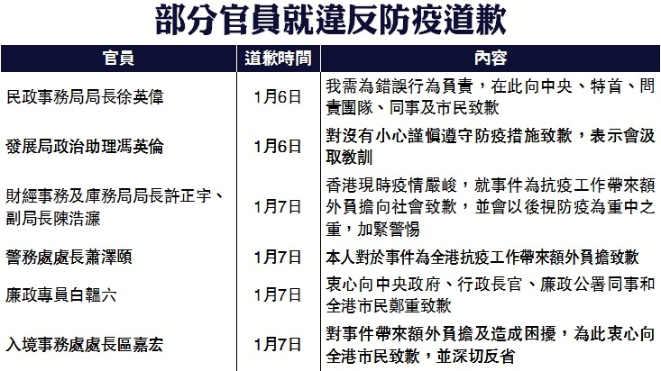 食物及衞生局局長陳肇始昨日在一個電台節目表示,出席宴會的人要反思,在抗疫關鍵時期,全港市民無論在什麼崗位,都要謹守防疫。衞生防護中心的個案追蹤辦公室每日疲於奔命,追蹤個案及密切接觸者,當前急務要盡快截斷傳播鏈,希望市民減少外出,政府內部會研究是否在「安心出行」應用程式增加追蹤功能。