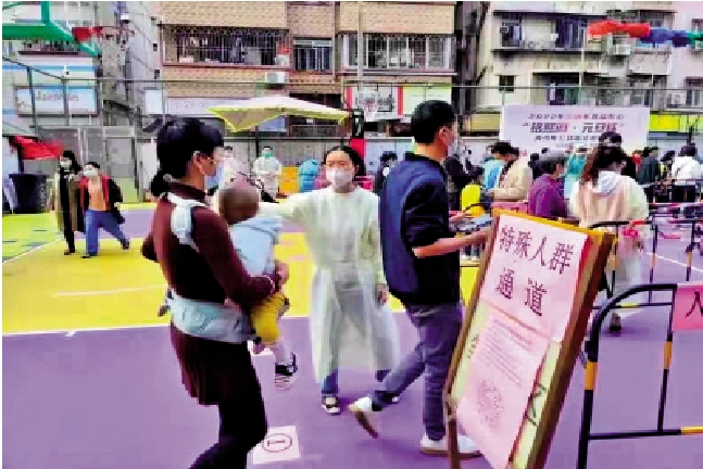 福田區蓮塘街道核酸檢測點專為老人、孕婦、兒童開闢優先通道,以縮短等待時間。部分臨時檢測點也在入口處,用廣播提醒老人孩子和孕婦等特殊人群,可以不用排隊,優先檢測。二胎寶媽胡女士5分鐘就完成了核酸檢測,檢測點開通的粉紅愛心通道,讓她感覺很暖心。