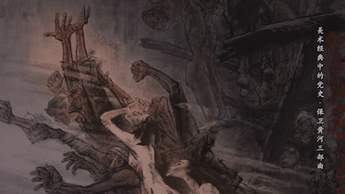 距離畫作《保衛黃河三部曲》誕生已經過去了三十餘年,我們彷彿能再一次聽到民族不屈精神的嘹亮歌聲——那裏有大地悲壯的嗚咽、有黃河奔騰的咆哮、也有浴血勝利的凱歌。