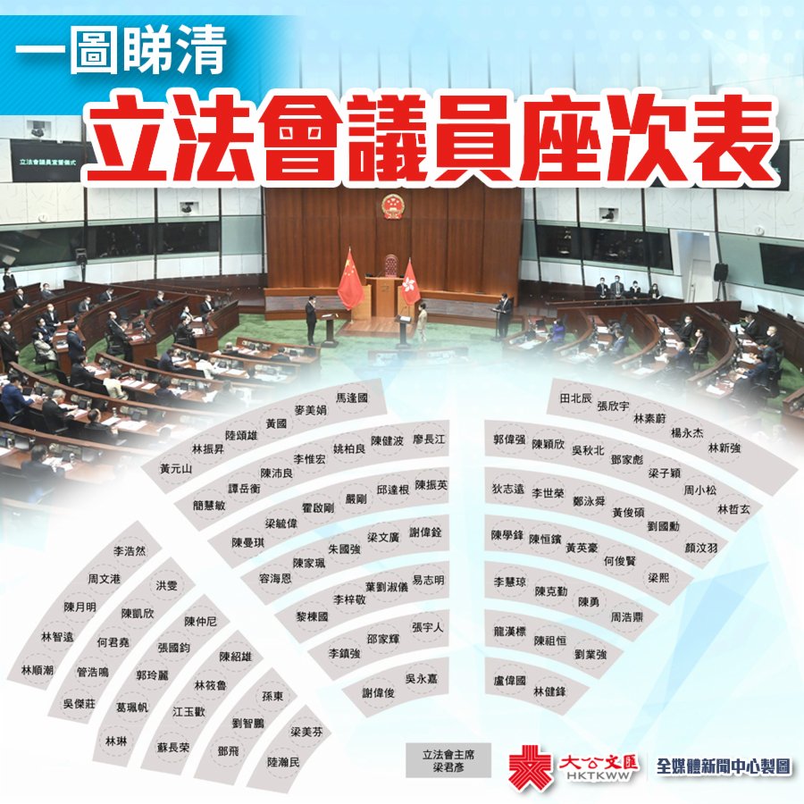 關鍵詞:立法會立法會議員座次表一圖睇梁君彥