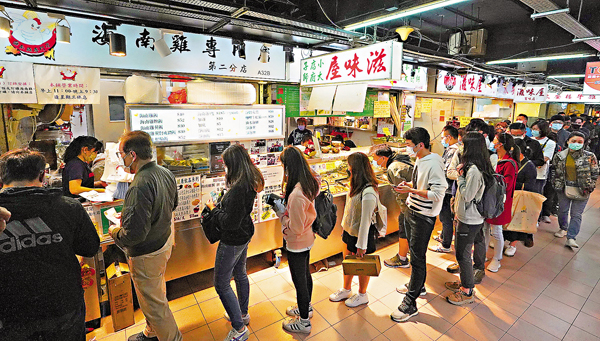 (香港文匯報記者 張弦)因應第五波疫情來襲,特區政府決定延長晚市堂食禁令,不少堂食食肆「拍烏蠅」,但有「港版夜市」之稱的西灣河太安樓室內熟食市場生意火爆。香港文匯報記者昨晚直擊,熟食市場的檔戶以經營外賣為主,不受堂食禁令影響,也毋須使用「安心出行」,不少市民買完外賣便即場除口罩嚐鮮,密密麻麻的人海中,食客之間無法保持安全距離,且通風系統極差。專家指出,這類「流動堂食」一旦現場有隱形患者,爆疫風險極高,惟「安心出行」未覆蓋,追蹤密切接觸者如同大海撈針。