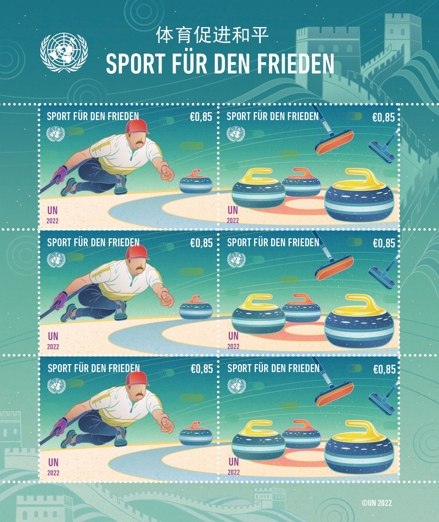 這組郵票是由中國插畫師阮菲菲繪製,色彩繽紛,用漫畫風格展現了冰球運動員、單板滑雪運動員、花樣滑冰運動員、雪車運動員、冰壺運動員及高山滑雪運動員的形象。