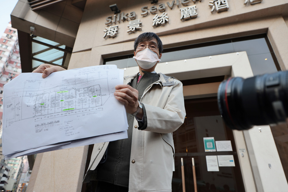政府專家顧問、港大微生物學系講座教授袁國勇昨日實地調查後表示,酒店房間換氣率不足,導致交叉感染,涉事房間左右3間房、對面的左右3間房住客均需額外檢疫14日。