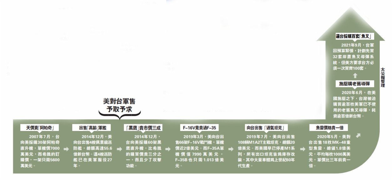 關其行指出,民進黨執政以來,軍事花銷直線飆升,對美軍購品類更是魚龍混雜。相比構築有效的防禦戰力,民進黨當局似乎更在意如何用更快捷、更直接的方式將龐大的軍事預算花出去,以博取美國方面的歡心。台軍採購回來的武器裝備究竟能發揮多少價值,則成為無人關心的話題。民進黨當局已淪為外部勢力在台代理人。其「以武謀獨」之心不死,謀「獨」挑釁動作不止,只會將台灣社會推向災難深淵。購買再多武器,也無法改變「台獨」終將滅亡的結局。