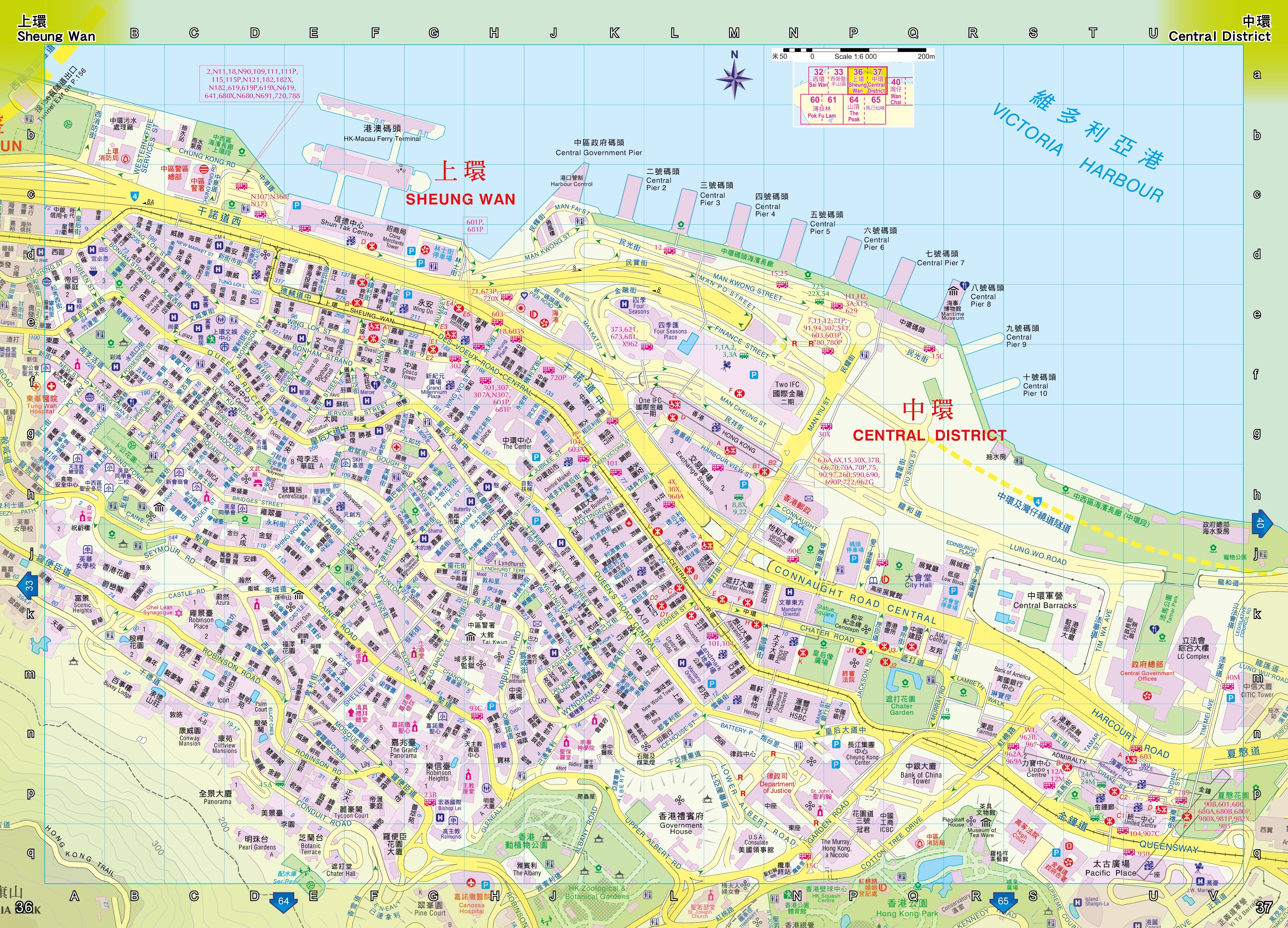 今年的《香港街》載有一系列正射影像圖,由在2020至2021年期間拍攝的航空照片製作而成。每頁地圖前均附有相應的正射影像圖,並標示主要地方、街道及小徑的名稱,讓讀者可迅速掌握香港的地理環境及相關的空間信息。