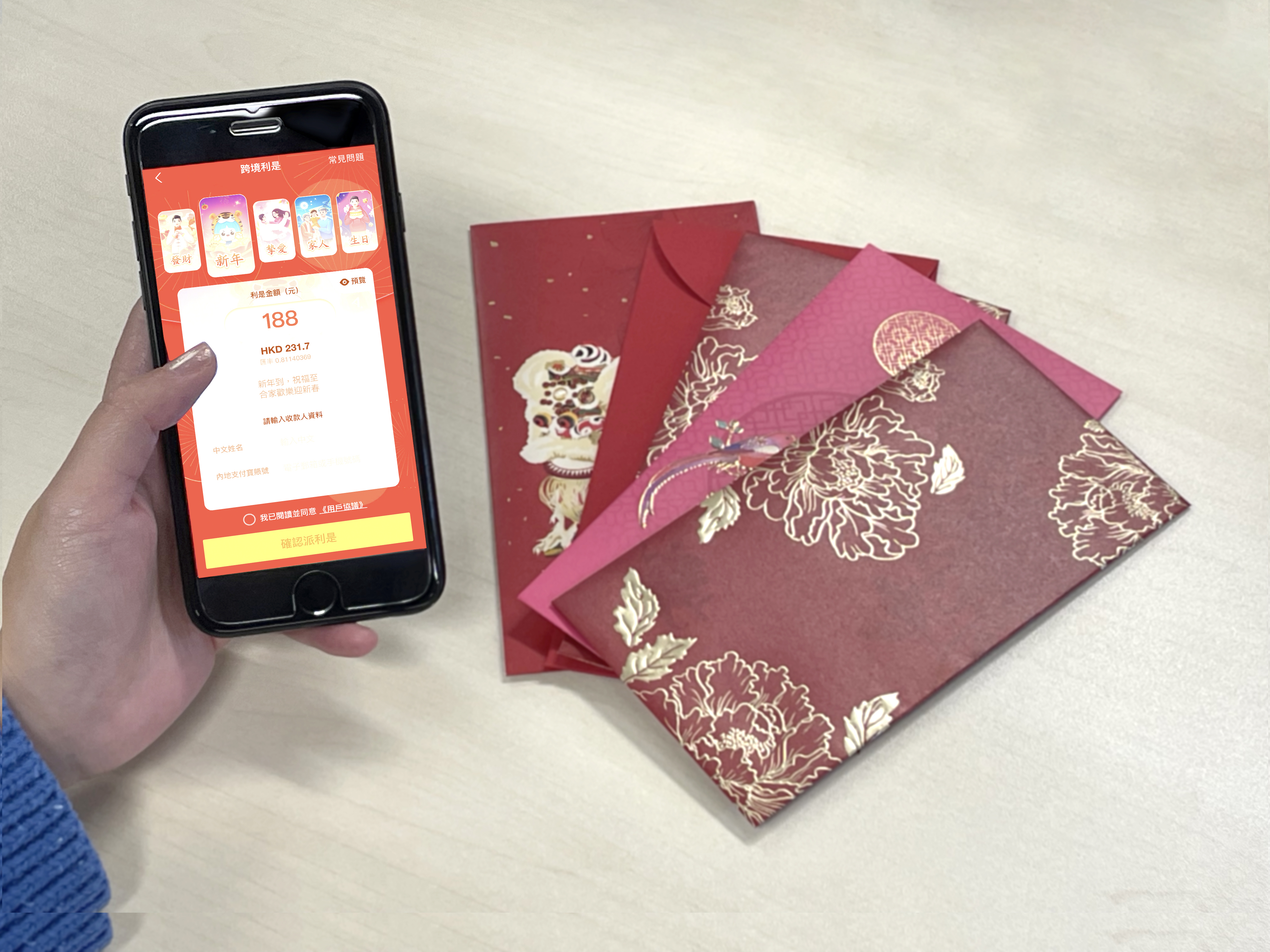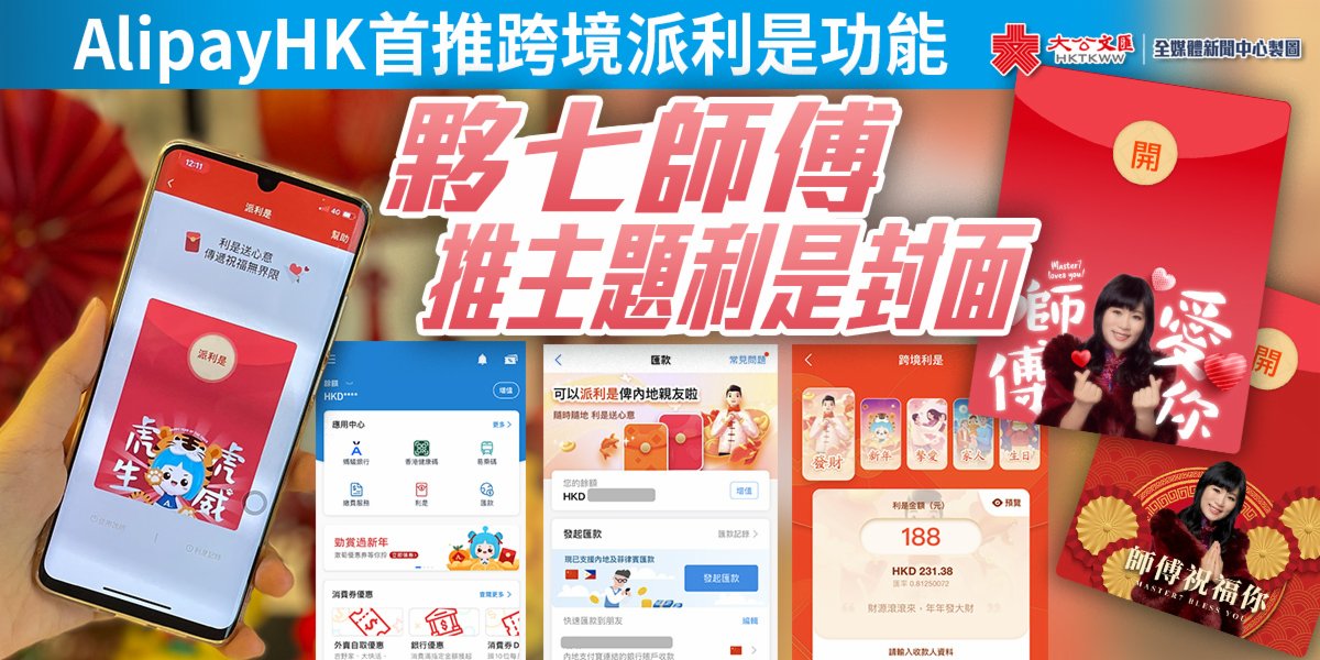 本地利是方面,今年AlipayHK推出19款主題利是封面,更聯乘人氣玄學家七仙羽(七師傅)合作推出多款限定專屬封面,派利是時揀選其合作封面,由七師傅加持心意向親人朋友送祝福。