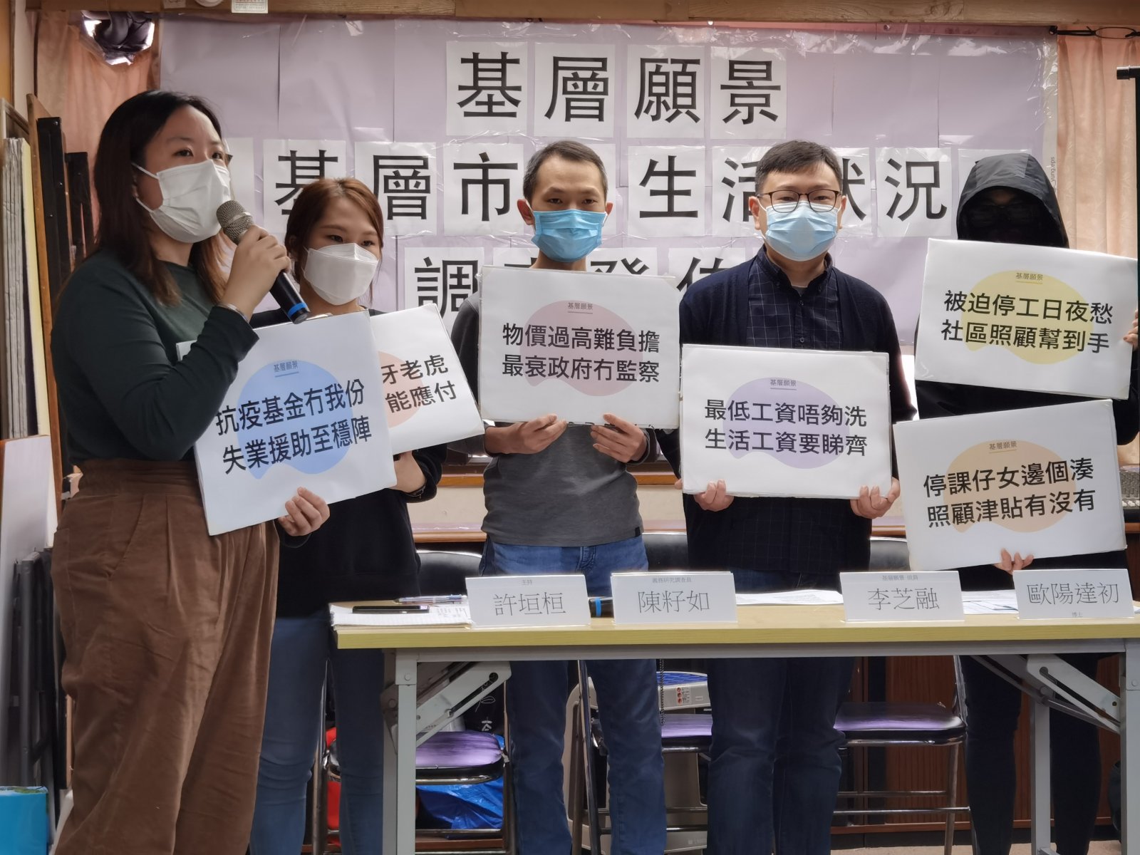「基層願景」認為,現時扶貧政策未完善,不少基層家庭未能受惠,其中正在領取最低工資的基層工種、因疫情面對突發變動的基層街坊和處於夾心狀態為能申請現有政策的基層市民現正處於水深火熱之中,呼籲政府有責任確保整個收入保障制度能夠保障市民基本生活。住屋開支龐大,政府應在公私營房屋政策上做多項改革措施,減輕基層家庭生活壓力。面對家庭照顧者無法外出工作,但希望子女得到全面發展,開支亦有增無減,呼籲政府應在社區支援、家庭和兒童政策方面入手。