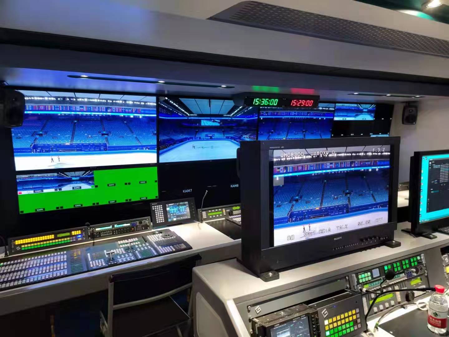 這台全球首部8K+5G超高清視頻全業務轉播車,由北京中聯超清/協同中心設計製造,承擔着北京冬奧會8K超高清信號轉播製作任務,它是內地唯一超高清國產裝備漸進式發展綜合實驗平台,也是目前全球最先進的8K轉播車。該轉播車國產化率超過了15%,最終目標是實現100%國產化替代。