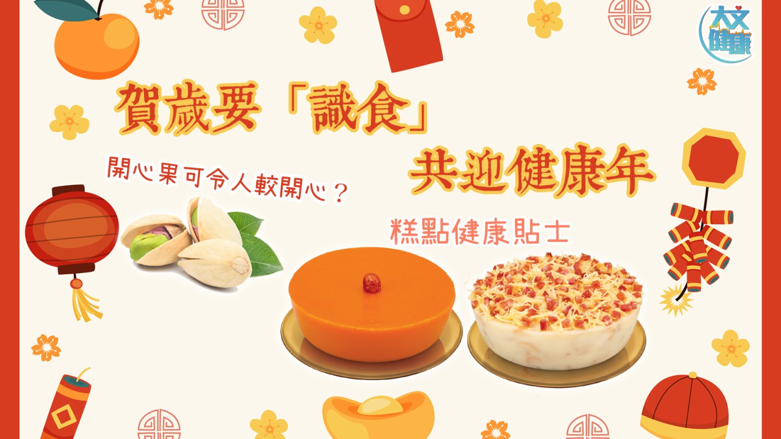 農曆新年將至,意味着大家又可以享用各種美味可口的賀年食品,「煎堆」碌碌金銀滿屋、「笑口棗」笑口常開更是新年必吃之選。雖然吃賀年食品的意義在於意頭,但面對琳琅滿目的美食放在眼前,加上在濃厚的節日氣氛影響下,難免令人吃無節制,體重飆升,一不小心就真的要過「肥」年。不過,只要選擇恰當和注意食量,其實亦可吃得健康又安心。