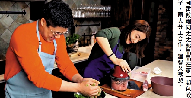 春節將至,體育、演藝、文化及出版界立法會議員霍啟剛,近日分享了一段同太太郭晶晶在家嘗試包餃子的視頻。在視頻中,兩人分工合作,默契十足。郭晶晶認真地搓麵粉、切豬肉,而霍啟剛則在一旁積極擔當小助手,向網民解釋做每一個步驟的原因,並幫忙整理蔬菜。他還向大家介紹,家庭中既有南方人,也有北方人,因此餃子是餐桌上經常出現的食物,而家中的三個小朋友也非常喜歡北方麵食。