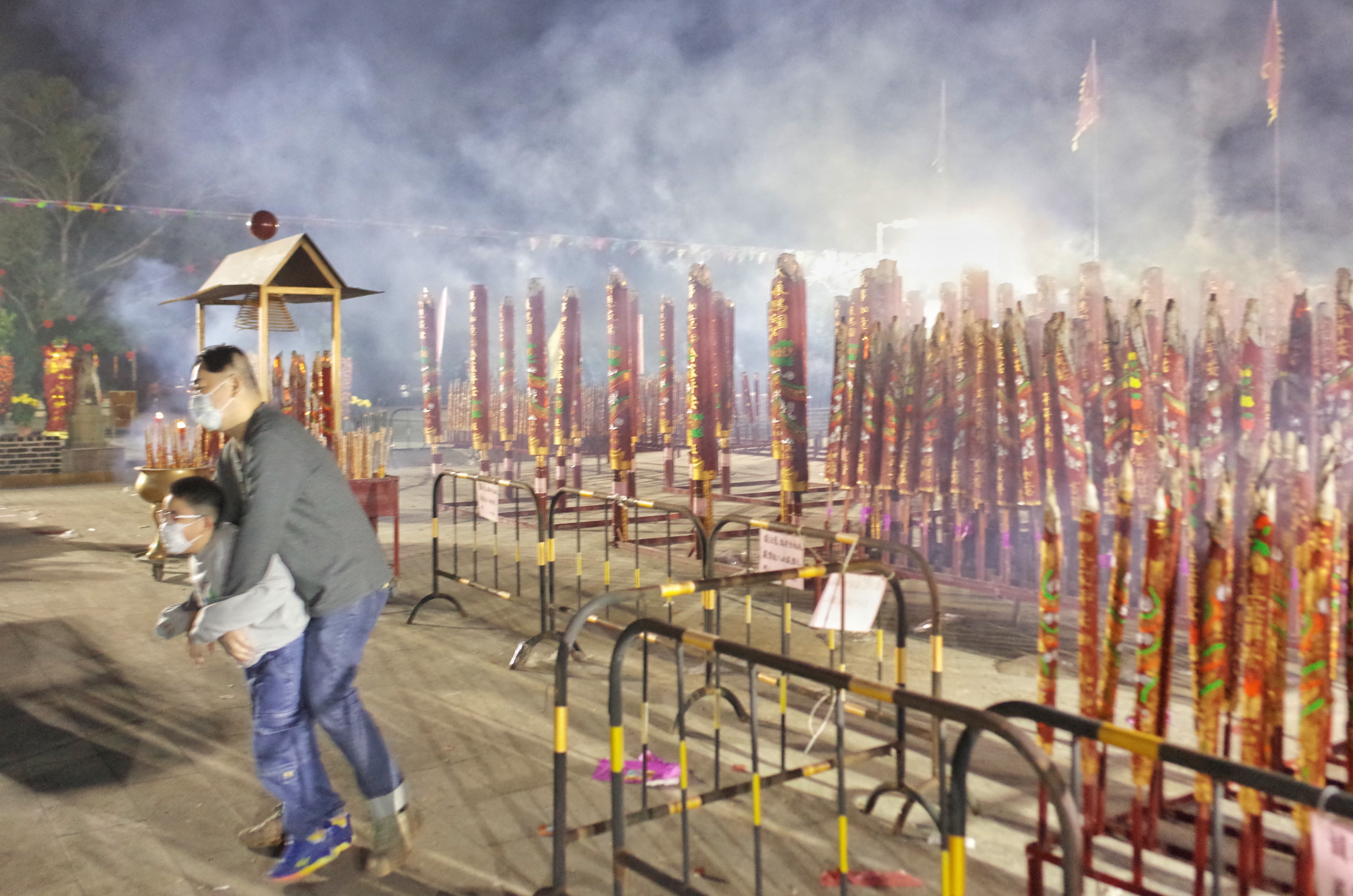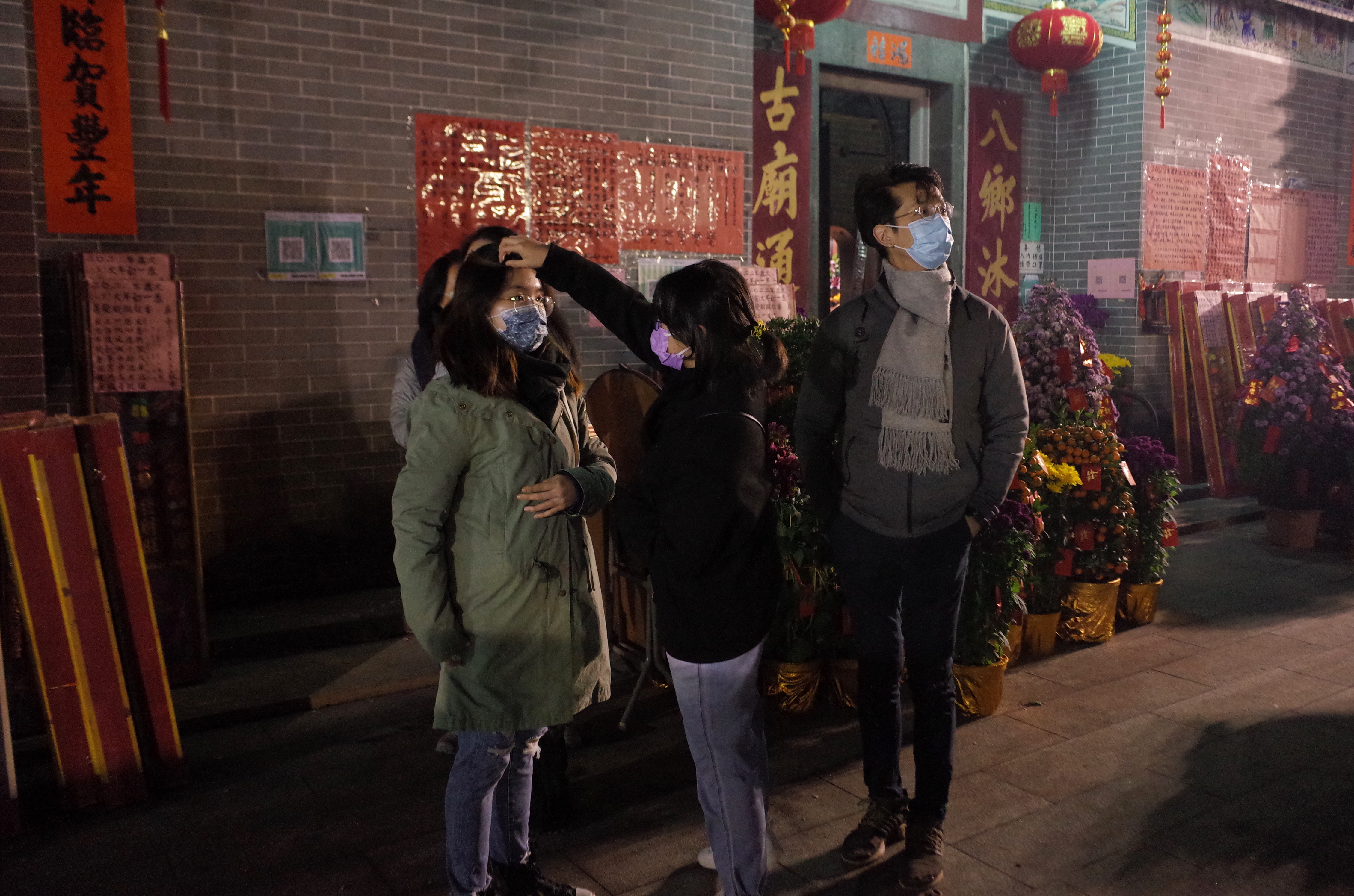 大公文匯全媒體報道,每逢春節,位於香港元朗錦田的八鄉古廟都會有很多善信前來上頭炷香,寓意新一年有一個好的開頭。其中會放鞭炮,上香拜神等,極富傳統春節氣氛。