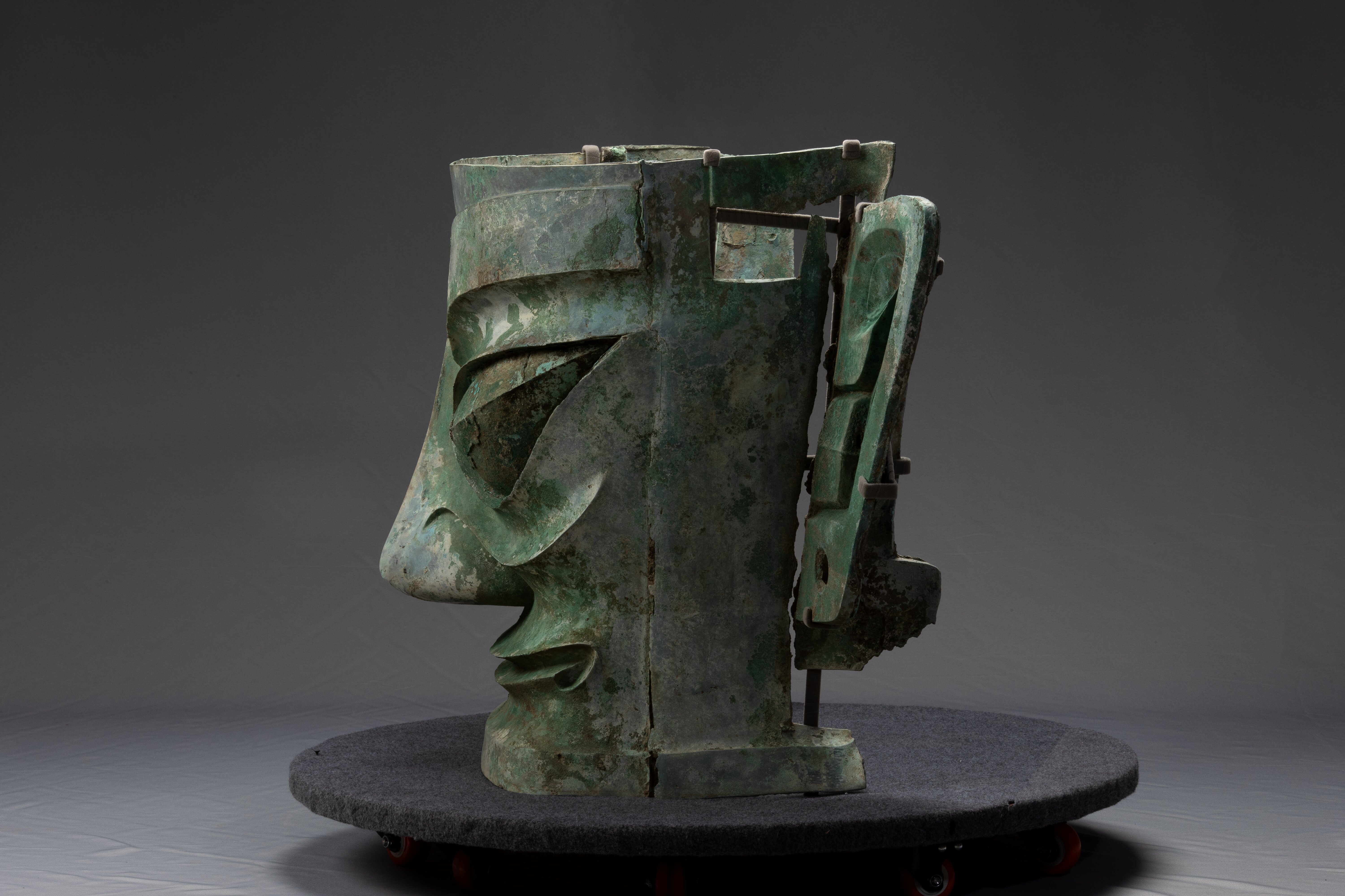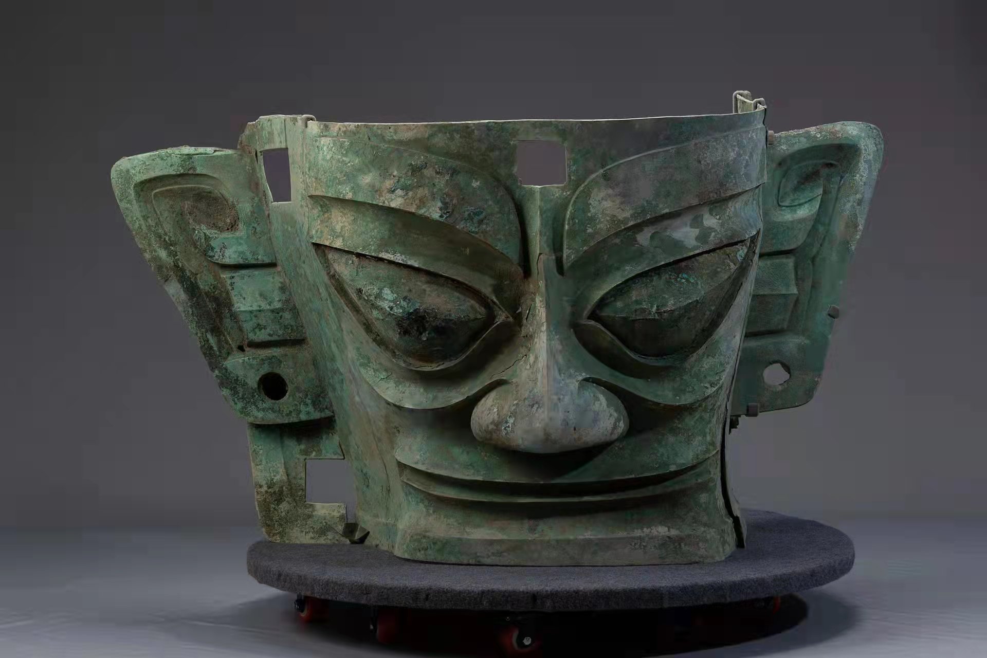 2021年6月23日,面具提取出坑。考古和文物保護人員對青銅大面具的鑄造工藝進行分析研究後認為,其製作先分鑄成型,由面部、臉頰後部、眼睛、耳朵等多部位分別鑄造,再組合成一體,大面具右側眼部還發現有經緯組織的絲綢織物殘留。