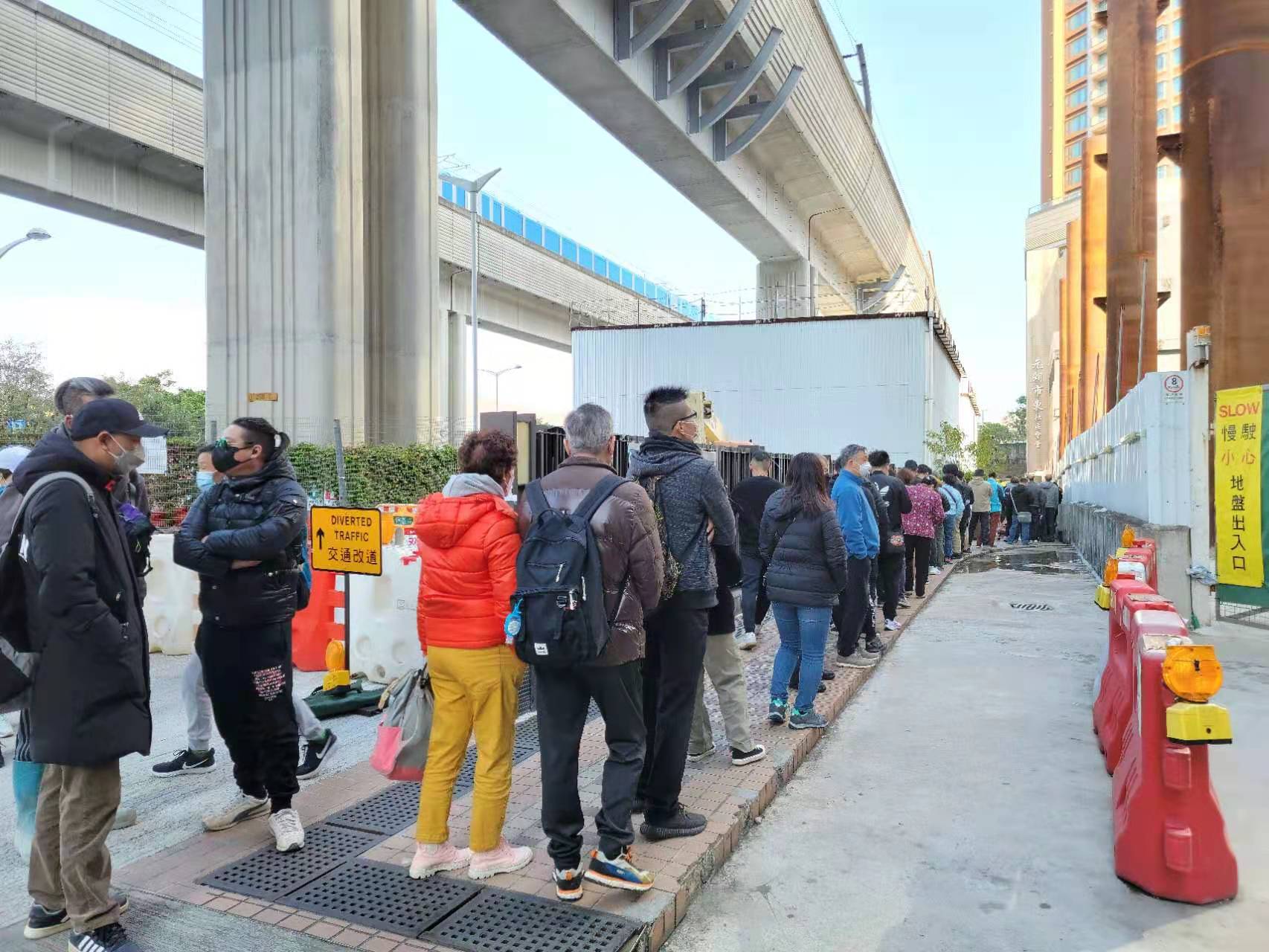 點新聞記者今日到訪新界多個檢測站,位於青衣長發邨長發社區中心的檢測站外有大批市民等候,接受訪問的青衣居民麥小姐表示,早前收到「安心出行」通知自己曾到有感染風險的食肆用餐,過去多天來到檢討站進行檢測,所幸檢測報告都是陰性,今天等候了1小時就進入檢測中心,時間不算太久,然而近日香港疫情持續惡化,天天都有過百宗的確診,令她十分擔心,令她的新年計劃被打亂,明天與親友約好的拜年活動亦可能被迫取消。