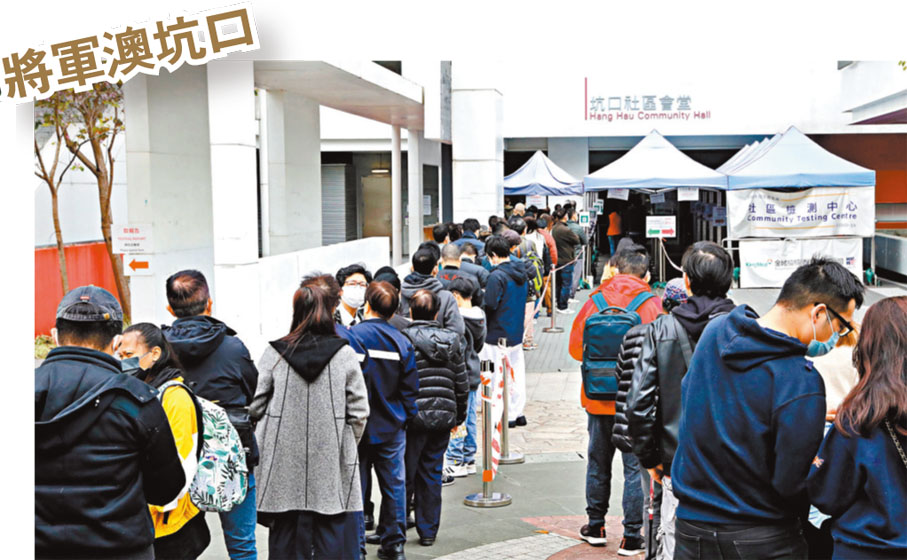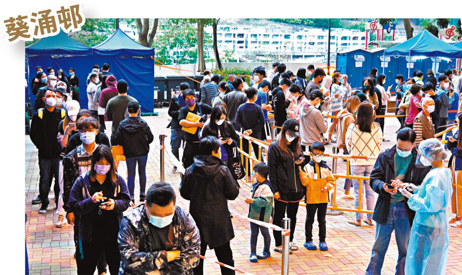 香港確診數字居高不下,連續多日有數十個場所被納入強檢公告,大批市民須接受檢測。為應對暴增的檢測需求,政府昨日已於油塘道遊樂場、藍田配水庫遊樂場、大埔體育館及天水圍天晴社區會堂增設流動採樣站,令全港各區合共有59個地點可供檢測,但仍顯得供不應求。