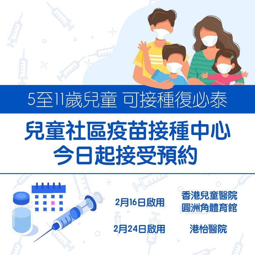 聶德權指出,全港暫有3間兒童社區疫苗接種中心,其中九龍香港兒童醫院和新界圓洲角體育館會在2月16日投入服務,而港島港怡醫院則會在2月24日轉作兒童專用的接種中心,為小朋友接種復必泰。專家建議,接種第1劑與第2劑應相隔12個星期。
