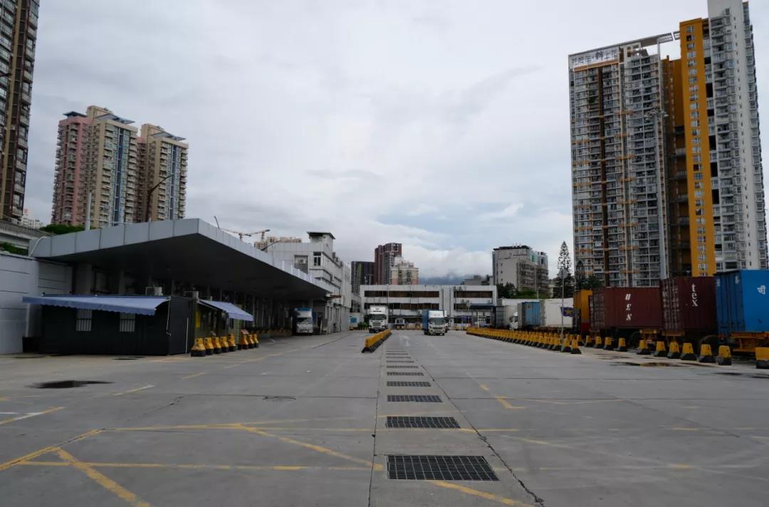 貨櫃車從文錦渡口岸區域排隊至沿河南路