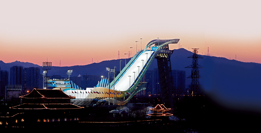 位於北京新首鋼高端產業綜合服務區的滑雪大跳台,將在冬奧會期間承辦單板和自由式滑雪大跳台比賽,4塊金牌將在這裏產生。被稱作「雪飛天」的滑雪大跳台主體結構長164米,賽道最寬處34米,最高點60米。設計理念源於中國敦煌壁畫中的「飛天」造型,從側面看上去猶如一隻靈動的「水晶鞋」。據悉,北京冬奧結束後,大跳台將繼續保留,成為全球第一個永久性大跳台場地。