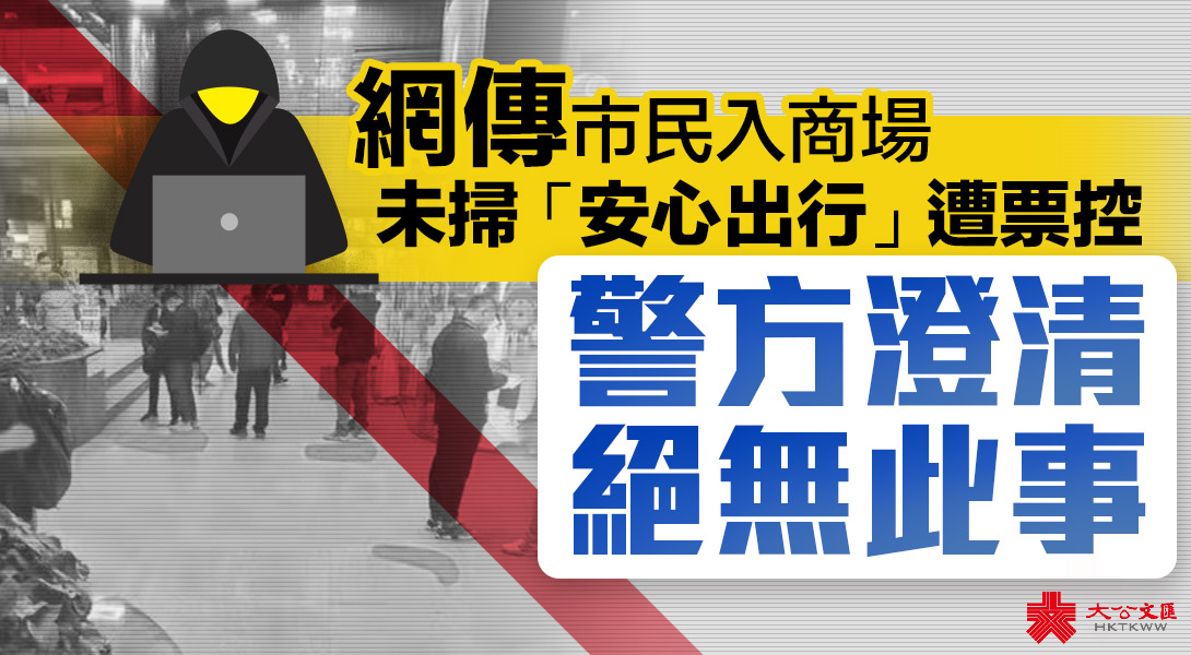 大公文匯全媒體報道,警方今日(12日)在社交媒體發文指,留意到網上流傳信息,聲稱警方於葵涌廣場和石籬商場,票控沒有使用「安心出行」應用程式而進入商場的市民,警方澄清絕無此事。