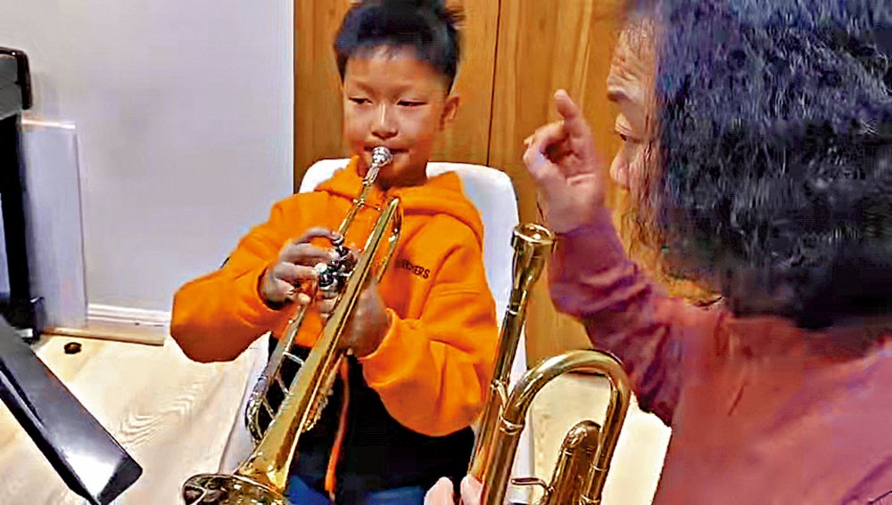 從此之後,全家進入了「備戰」狀態。朱德恩從2021年6月才正式開始學習小號,半年來每天都保持半小時至一小時的練習時間。但接到入選消息後,練習時間和難度被大幅提高,最長一天可練習4個小時。「恩恩2、3歲開始畫畫,4歲跟着奶奶學習鋼琴,去年開始練習小號。」朱德恩的奶奶常說「不要用手指彈鋼琴」,要把對曲目的感受通過觸覺傳遞給琴鍵,用音色表達喜怒哀樂。在媽媽看來,從小的耳濡目染加上其他藝術修養相輔相成,使他吸收能力強,小號進步很快。