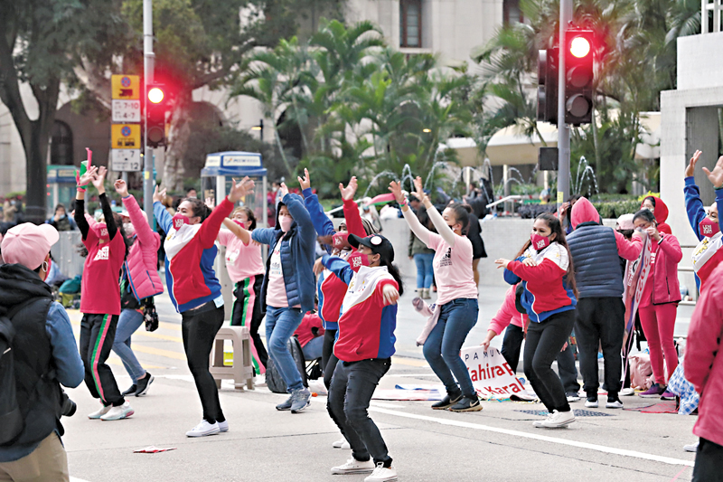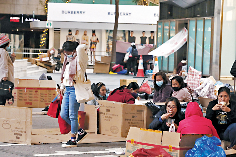(香港文匯報 記者 文森)香港面對兩年以來最嚴峻的新冠疫情,特區政府收緊社交距離措施,包括重推二人限聚令等,但不少外傭仍然「懶理」,昨日是措施收緊後首個周日,中環仍有大批外傭聚集,大部分都是兩個人以上的聚會,部分更除下口罩聊天,亦沒有保持1.5米社交距離。香港家庭傭工僱主協會主席容馬珊兒直言,僱主對上述情況毫無辦法,惟望政府加大票控執法力度,而民建聯副主席、港島西立法會議員陳學鋒亦直言情況並不理想,已向警方反映。