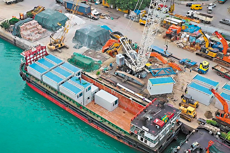 自2021年起,珠江中轉還積極參與香港防疫隔離屋運輸項目,助力香港防疫中心建設,截至目前已經完成運輸組裝式隔離板房共266個。所用到的材料、水泥預製件等配件超過2.5萬件,總重量超2萬噸。