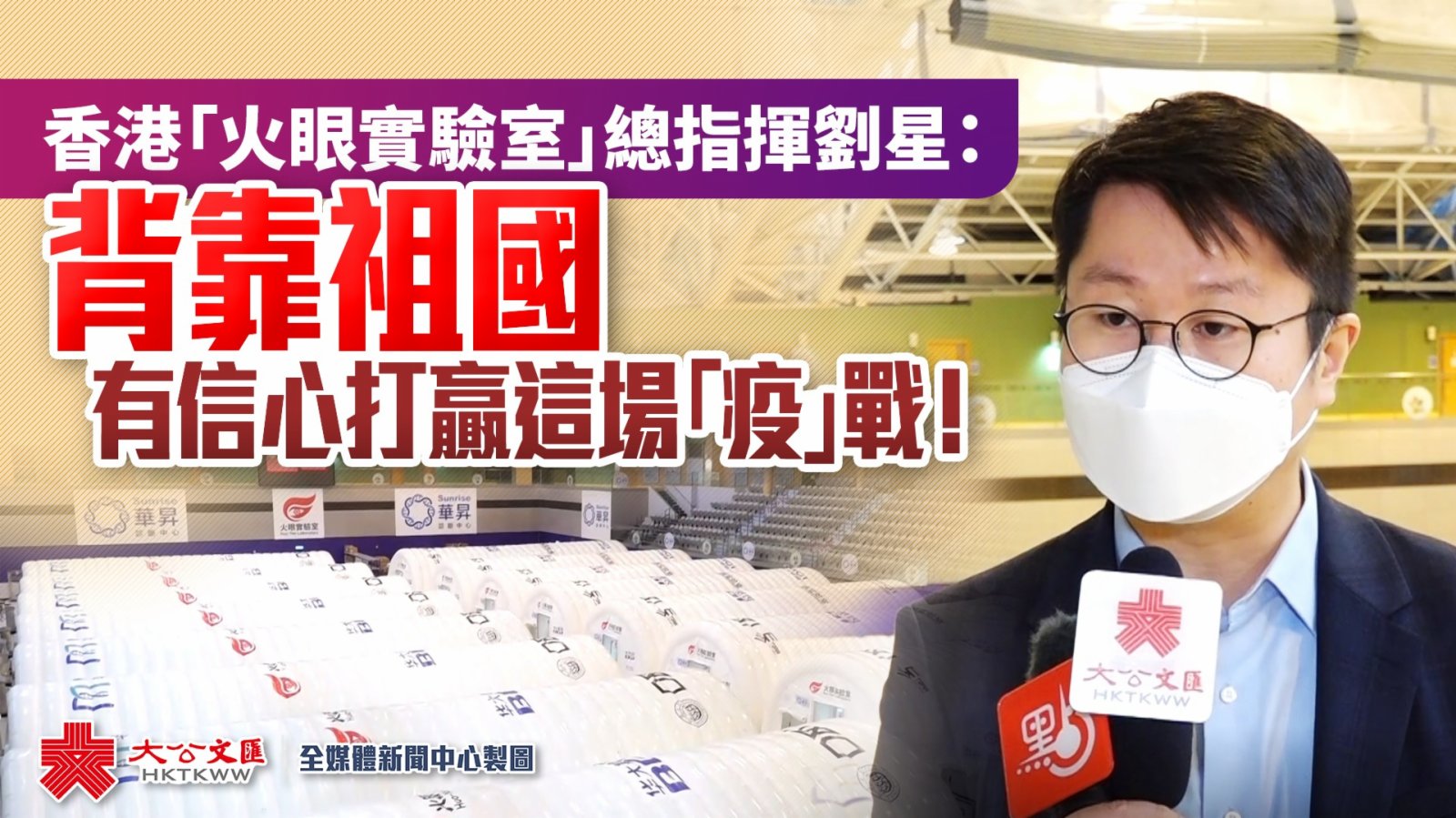 大公文匯全媒體報道,馬鞍山體育館搭建的「火眼實驗室」明日(15日)凌晨起可以運作。「火眼實驗室」總指揮、華昇診斷中心有限公司副總經理劉星博士今日接受點新聞記者訪問時表示,作為總指揮,自己和團隊有信心打贏這場「疫」戰,他指出,香港背靠偉大的祖國,在內地提供強大動員以有足夠的人力、物力支持香港,相信一定可以成功抗疫,回復正常社會秩序。
