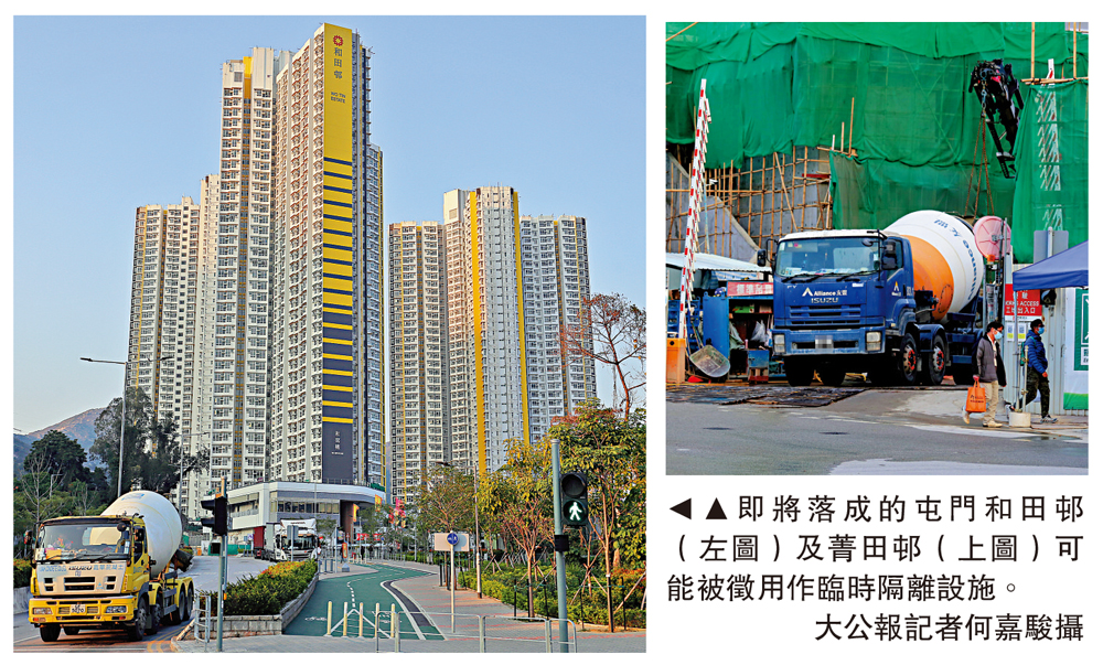 據了解,政府正考慮將位於屯門的菁田邨及和田邨,暫時用作隔離設施。兩個屋邨暫定於三月至六月期間落成,涉及九幢非標準型大廈,合共可提供9415個單位。