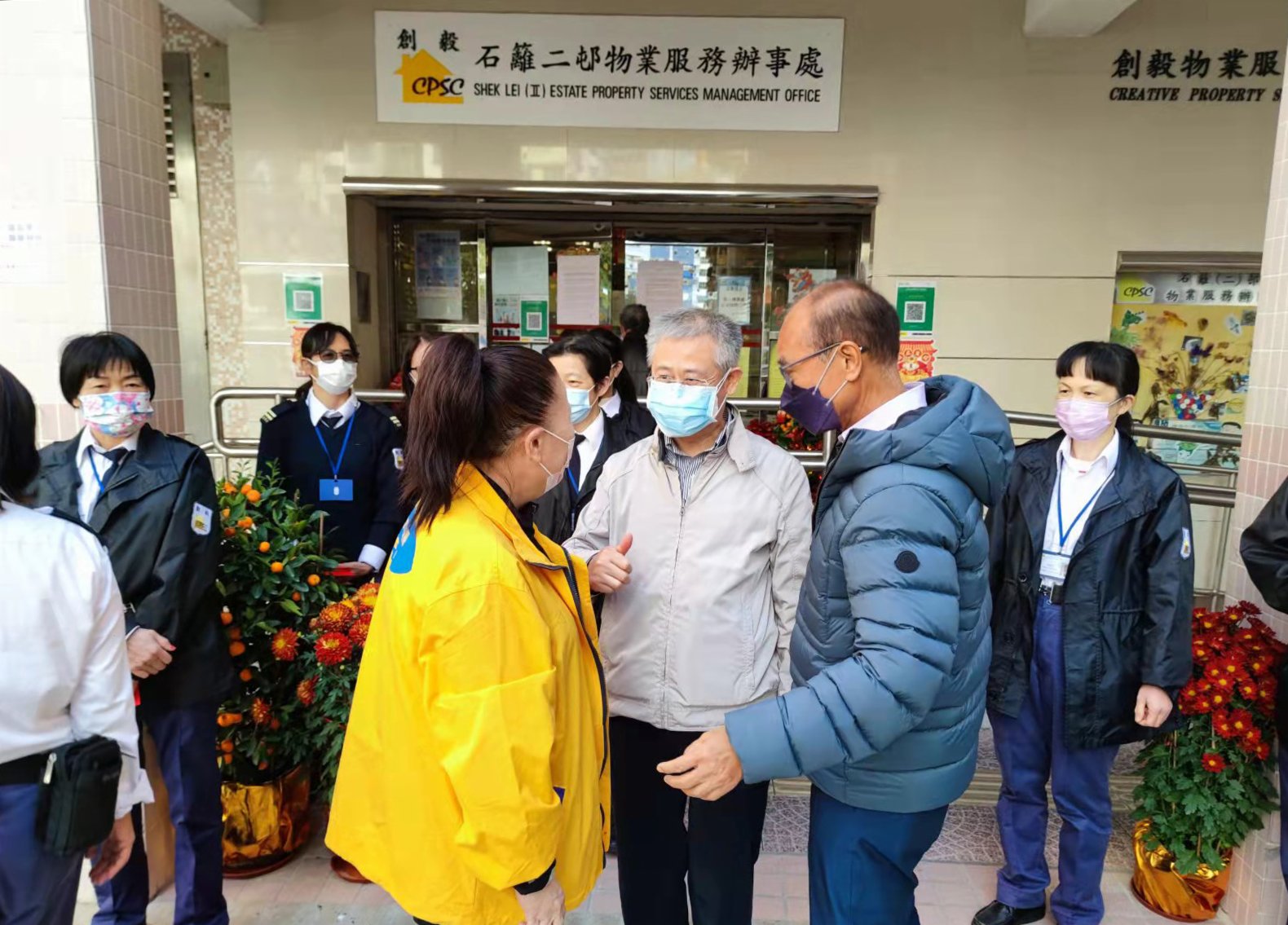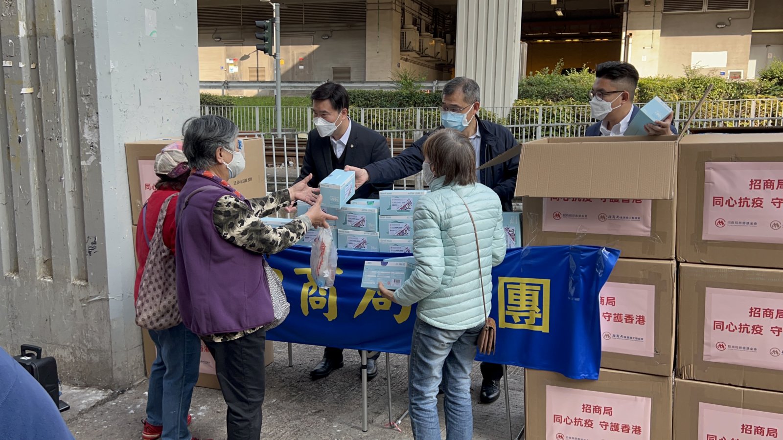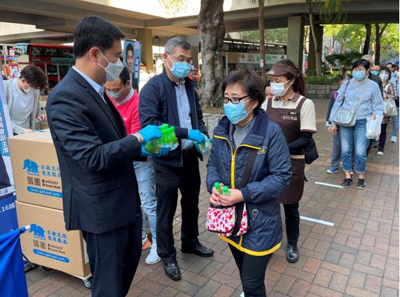 香港立法會議員、招商港口總經理嚴剛,招商局集團職工聯誼會有關負責人以及義工代表,與社區工作人員一同向社區居民派發口罩、消毒搓手液等防疫物品,總共派發了近15萬個口罩,7700支消毒搓手液,25000片消毒濕紙巾等防疫物資和2500份愛心餐。嚴剛議員還在現場與當地居民深入交流,詢問、了解他們的生活情況、防疫需求等。