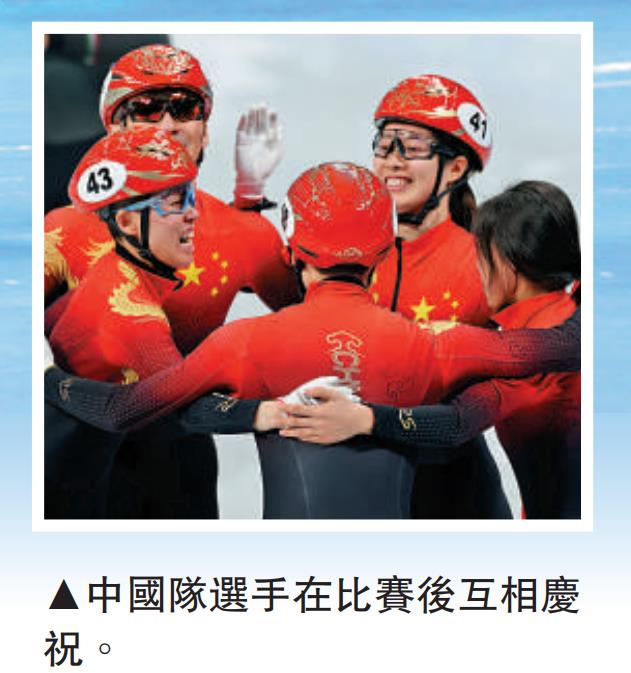 男女混合接力短道速滑決賽終於開始了。當鏡頭切到中國國家隊隊員的時候,我看見他們都不約而同地指着胸口前的五星紅旗。我的心開始狂跳。比賽槍聲一響,中國隊排在第三位,我竭力地吶喊着,在熒幕前大聲加油。