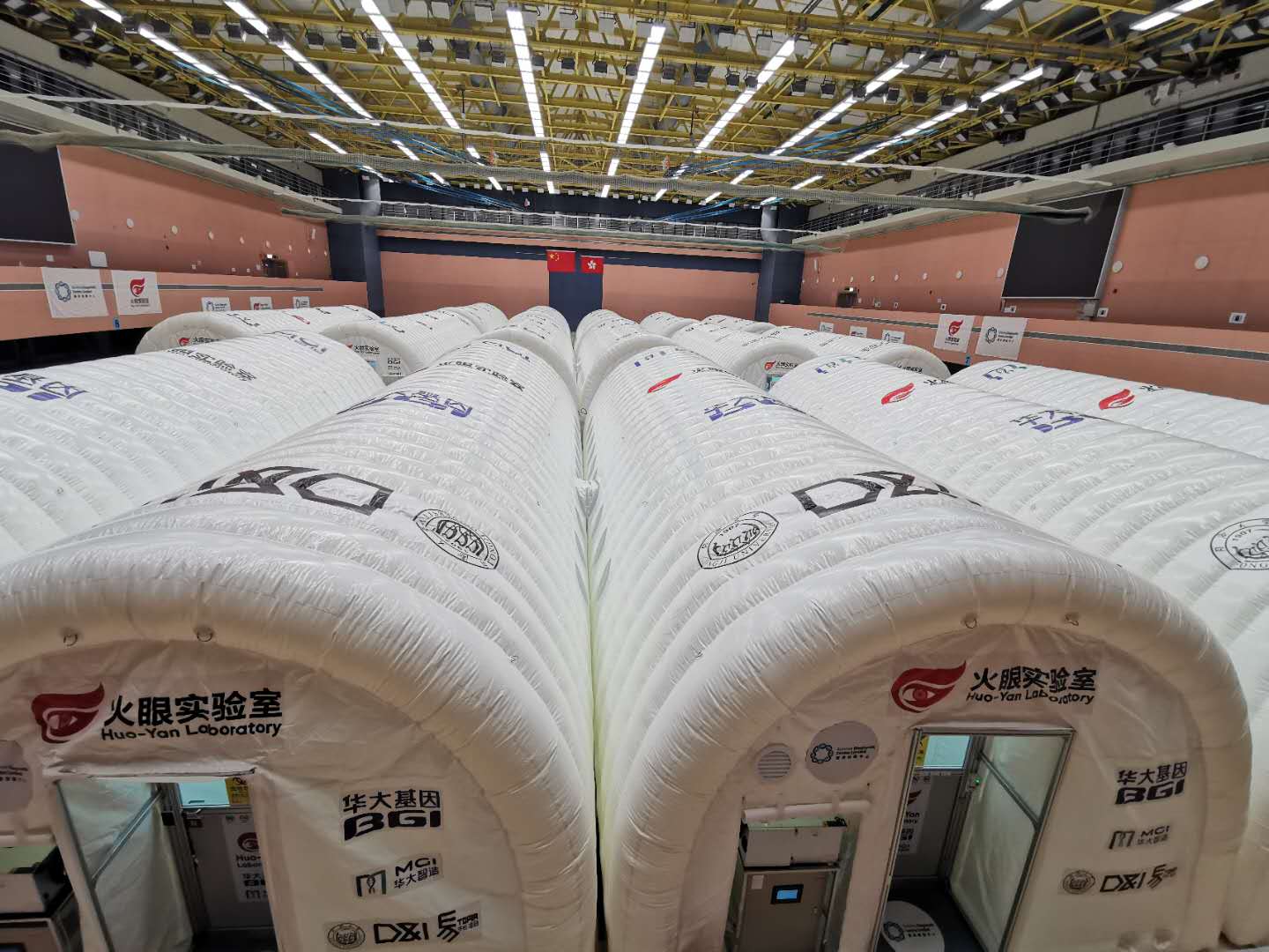 深圳華大智造科技有限公司,亦緊急調配多台自動化設備和多位工程師來港支援。工程師們通宵達旦完成超過50台自動化設備的安裝及開機調試工作,將使本港每日檢測量最高可達30萬單管。多名內地工程師表示,雖然工作任務重,壓力大,但能為香港抗疫工作做貢獻,深感榮幸和意義重大,希望疫情早點結束,更多人可以早日團聚。廣州金域醫學集團,亦準備2到3套「獵鷹號」硬氣膜實驗室準備隨時供港。