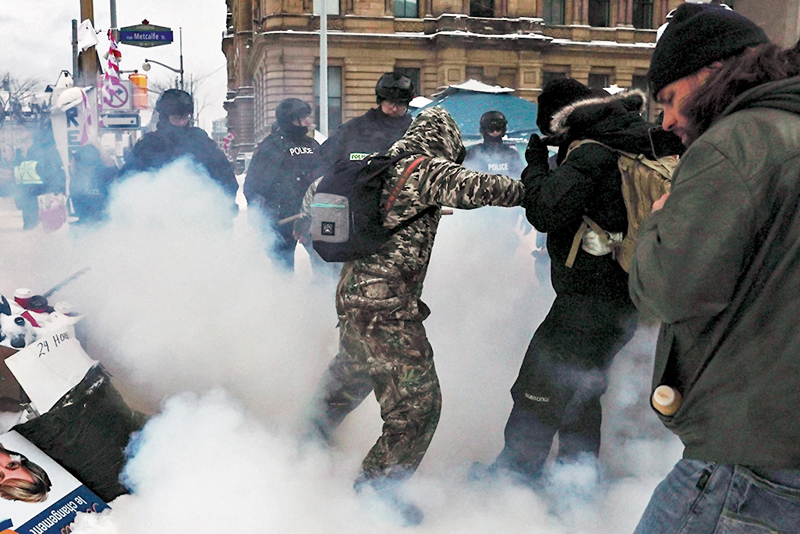 香港文匯報綜合報道:加拿大警方繼續清理首都渥太華市中心的反疫苗示威,前日成功將國會外的示威者驅離,行動中拘捕數十人,警方雖與示威者有肢體衝撞,但總體保持克制。示威組織「自由車隊」發出聲明稱,已要求貨車司機駛離國會山區域,但撤離需時。