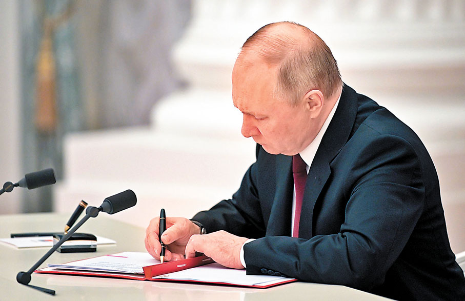 香港文匯報綜合報道,俄羅斯總統普京前晚簽署命令,承認烏克蘭東部的「頓涅茨克人民共和國」和「盧甘斯克人民共和國」,並簽署俄羅斯分別與這兩個「共和國」的友好合作互助條約。普京又隨即下令俄軍進入兩個「共和國」維持和平。美國和歐洲多國相繼對俄羅斯作出譴責,烏克蘭總統澤連斯基表示,俄方這一決定是對烏國家主權和領土完整的侵犯,破壞了和平努力和現有談判模式。