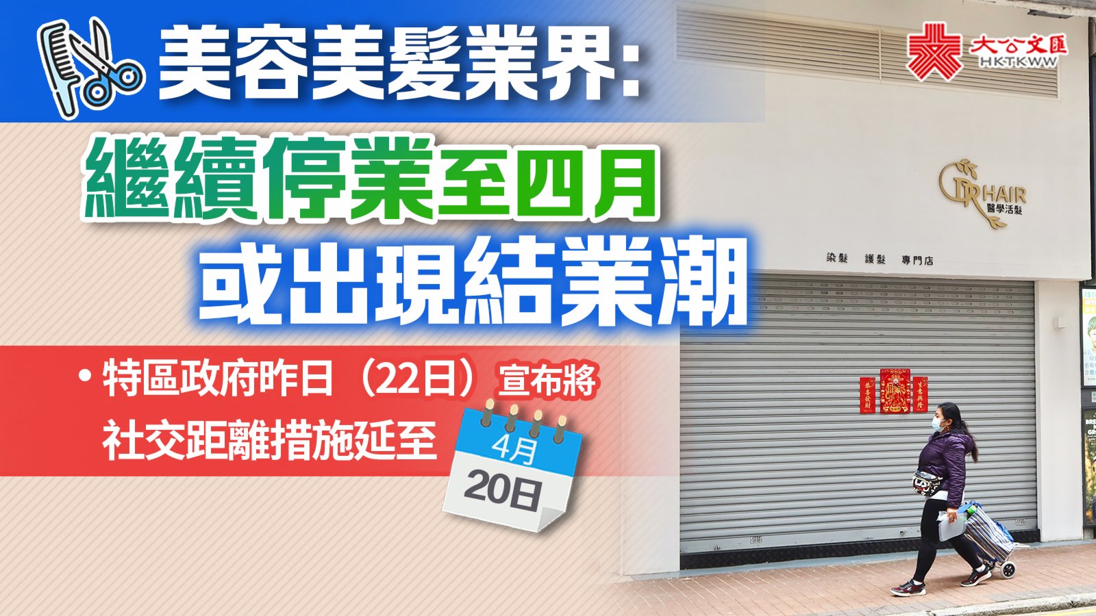 大公文匯全媒體報道,特區政府昨日(22日)宣布將社交距離措施延至4月20日,髮型屋須繼續暫停營業。香港美髮美容業商會會長江樹林今日(23日)在電台節目指,業界本來期望實施「疫苗通行證」後可以重開,但現時要停業多近兩個月,令業界「手停口停」,尤其不少髮型屋規模較小,停業下無能力交租。
