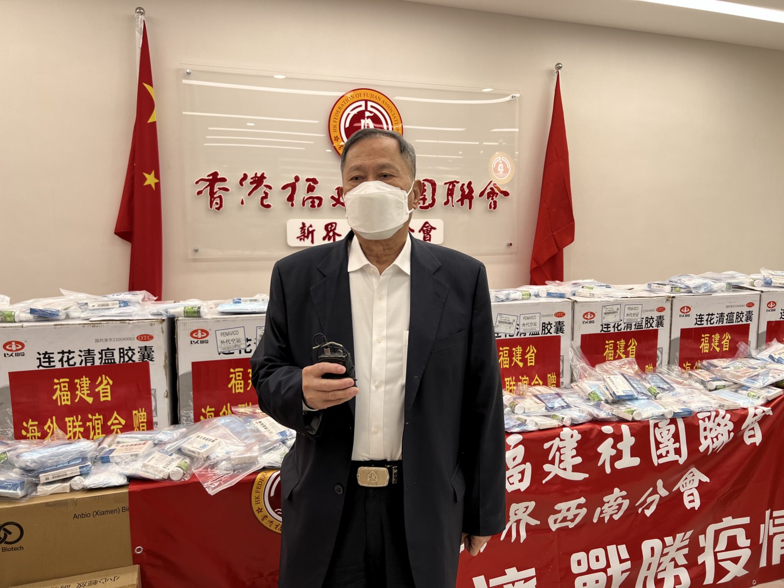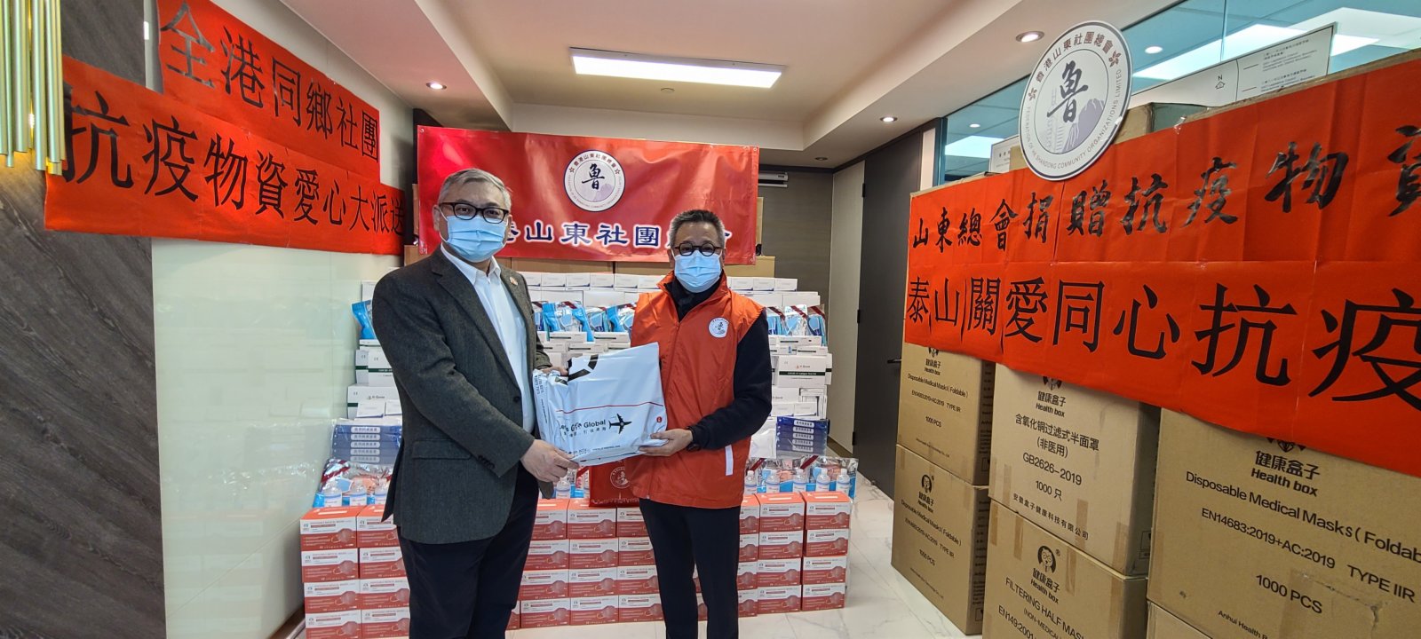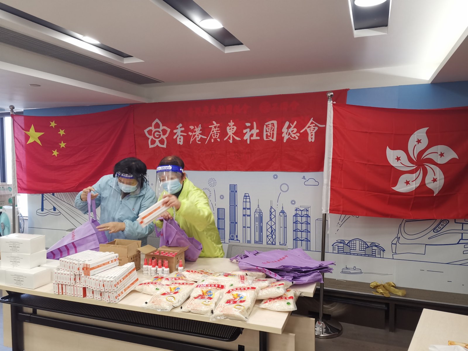 大公文匯網報道,面對洶湧來襲的第五波嚴峻疫情,在「全港社區抗疫連線」統籌下,香港廣東社團總會、香港福建社團聯會等26家省級同鄉社團今日(2月23日)在全港18區啟動「全港抗疫物資愛心大派送」活動,通過郵寄、插信箱、家訪等方式派發超過價值470萬元的物資,包括4.6萬個快速檢測試劑盒、25萬個口罩、1.2萬套隔離衣等抗疫物資。