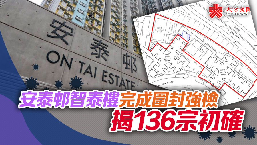 大公文匯全媒體報道,政府昨日(23日)引用《預防及控制疾病(對若干人士強制檢測)規例》(第599J章),自昨日下午4時30分起,對觀塘安泰邨智泰樓進行圍封強檢。政府今日(24日)中午約12時完成圍封強制檢測行動。