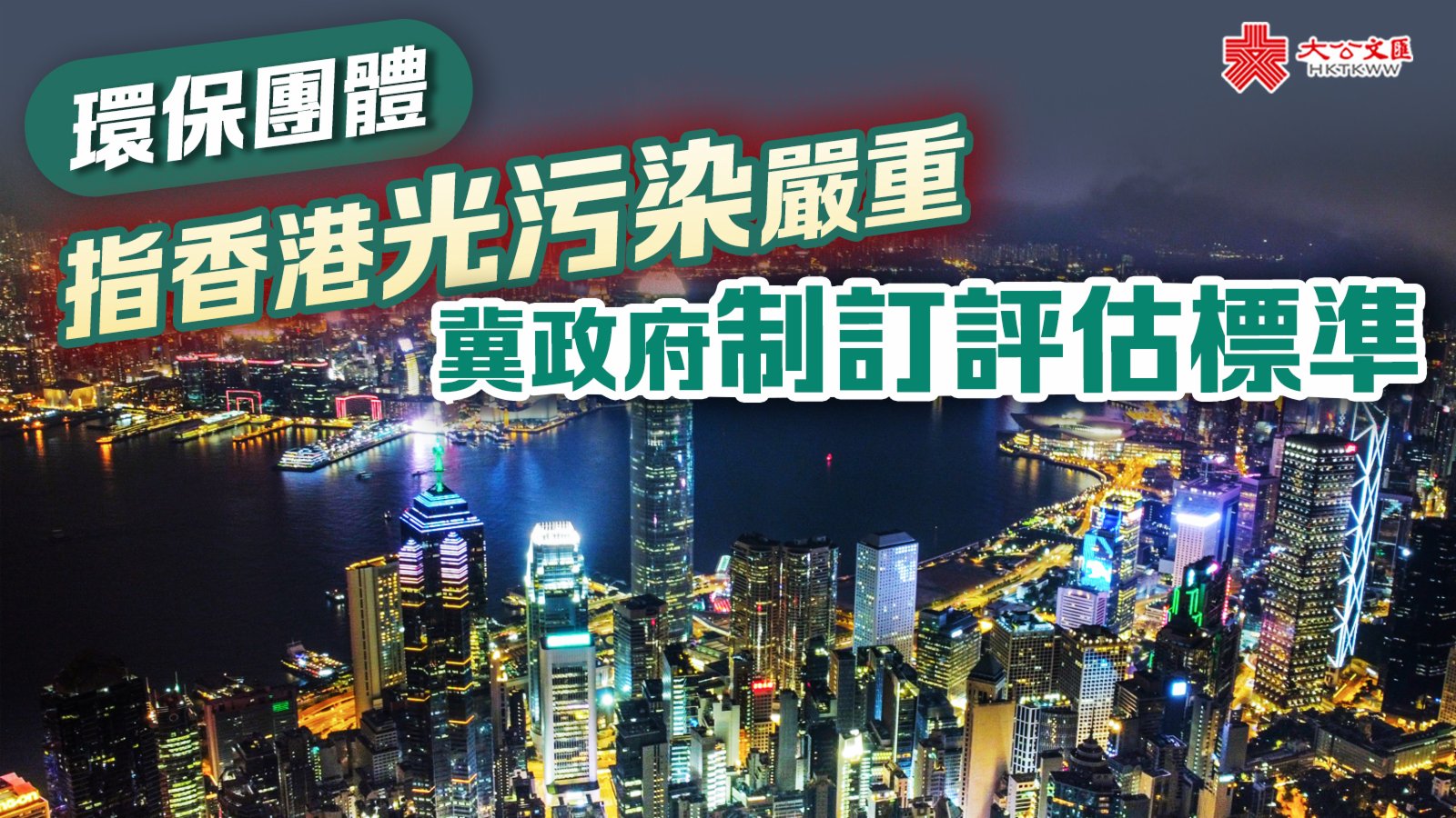 大公文匯全媒體報道,香港有不少建築外墻都設有LED燈帶、射燈等燈光設施,街道上亦有不少霓虹燈招牌,但過量的光源容易造成光污染問題,對市民造成困擾之餘,亦不利環保。環保團體綠惜地球今日(24日)就香港光害問題,在「世界生態城市高峰會」發表報告,指出本港光害重災區的光害程度,超出國際標準約9倍,惟環境局的應對措施未能有效規管。