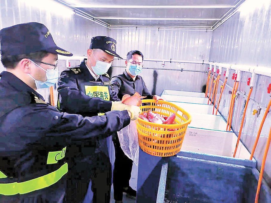 數據顯示,目前經港珠澳大橋口岸出口鮮活水產品至港澳的企業達27家,主要分布珠三角與粵西地區,出口的水產品種類也越來越豐富,目前經大橋出口的各類鮮活水產多達28種。港珠澳大橋海關工作人員稱,以前的水產企業主要在深圳等地報關,由於目前大橋口岸24小時通關,又有提前申報、「雲驗放」等優勢,漸成為供港澳鮮活水產品的主要通道。