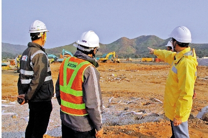 大公報記者昨日走訪了正在施工的落馬洲河套區應急醫院地盤,發現由於連日的天雨,大部分的施工區泥濘不堪,在約75公頃的廣闊地盤上,三十多部推土機、挖泥機不停地轟鳴着平整土地,一部一部的混凝土車不停地穿梭運作,工人們正努力趕工。