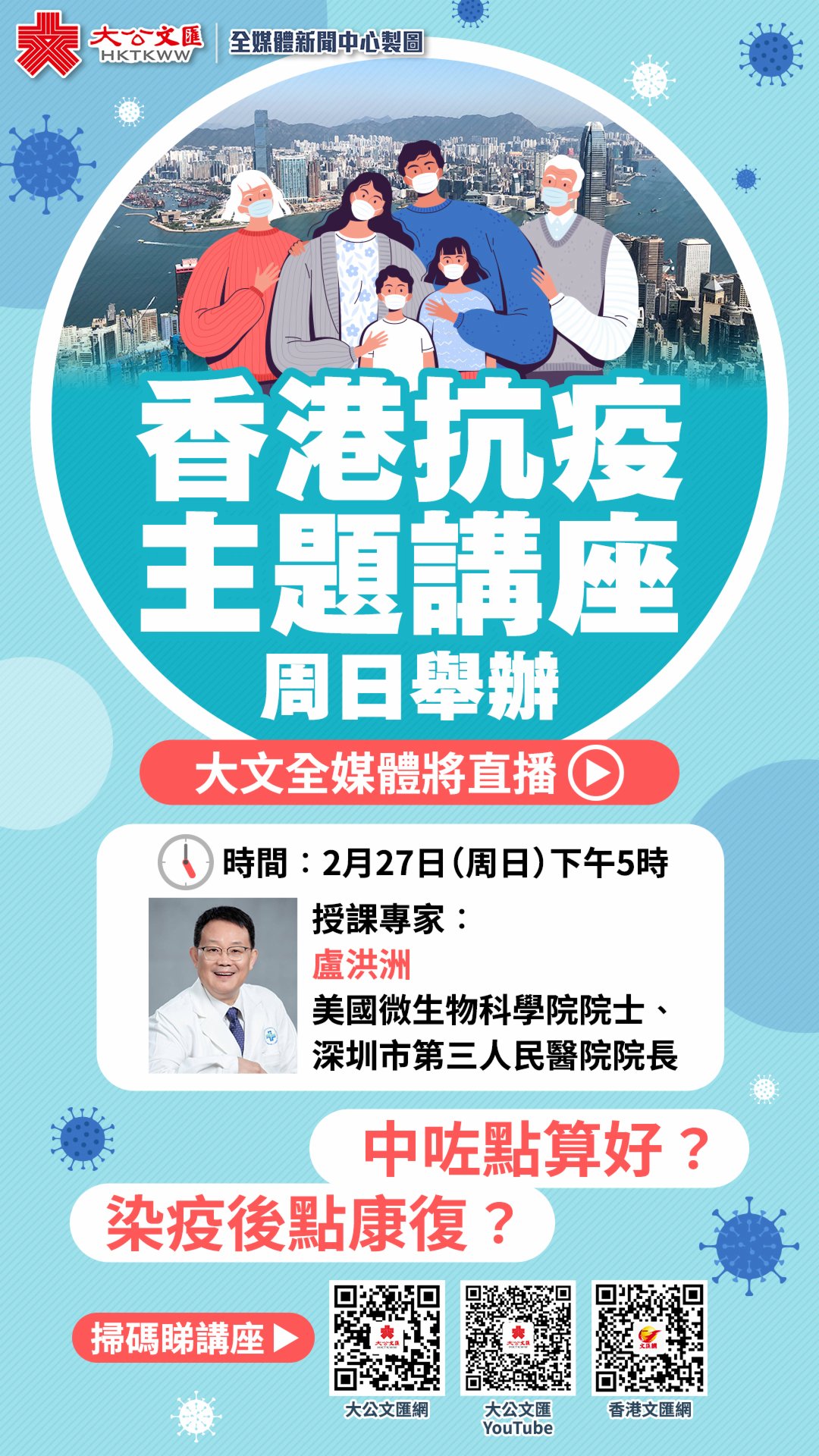 香港抗疫主題講座將通過康橋互聯APP及大公文匯網、「大公文匯網」微博、「大公文匯」視頻號、香港文匯網等各新媒體平台直播。