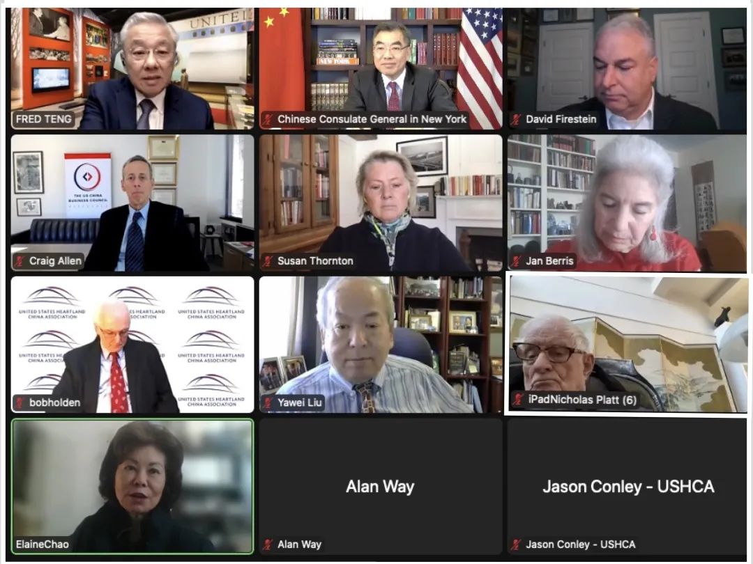 大公文匯全媒體報道,中國駐紐約總領館同美中公共事務協會昨日(2月28日)共同舉辦紀念尼克松總統訪華暨中美《上海公報》發表50周年研討會。黃屏總領事出席並致辭。美中公共事務協會會長滕紹駿、美前運輸部長趙小蘭、亞洲協會榮譽會長卜勵德、美中貿委會會長艾倫、美國腹地中國協會主席霍頓、美前代理亞太事務助卿董雲裳、美中關係全國委員會副會長白莉娟、喬治·布殊美中關係基金會總裁方大為、卡特中心中國項目部主任劉亞偉等美各界人士出席。