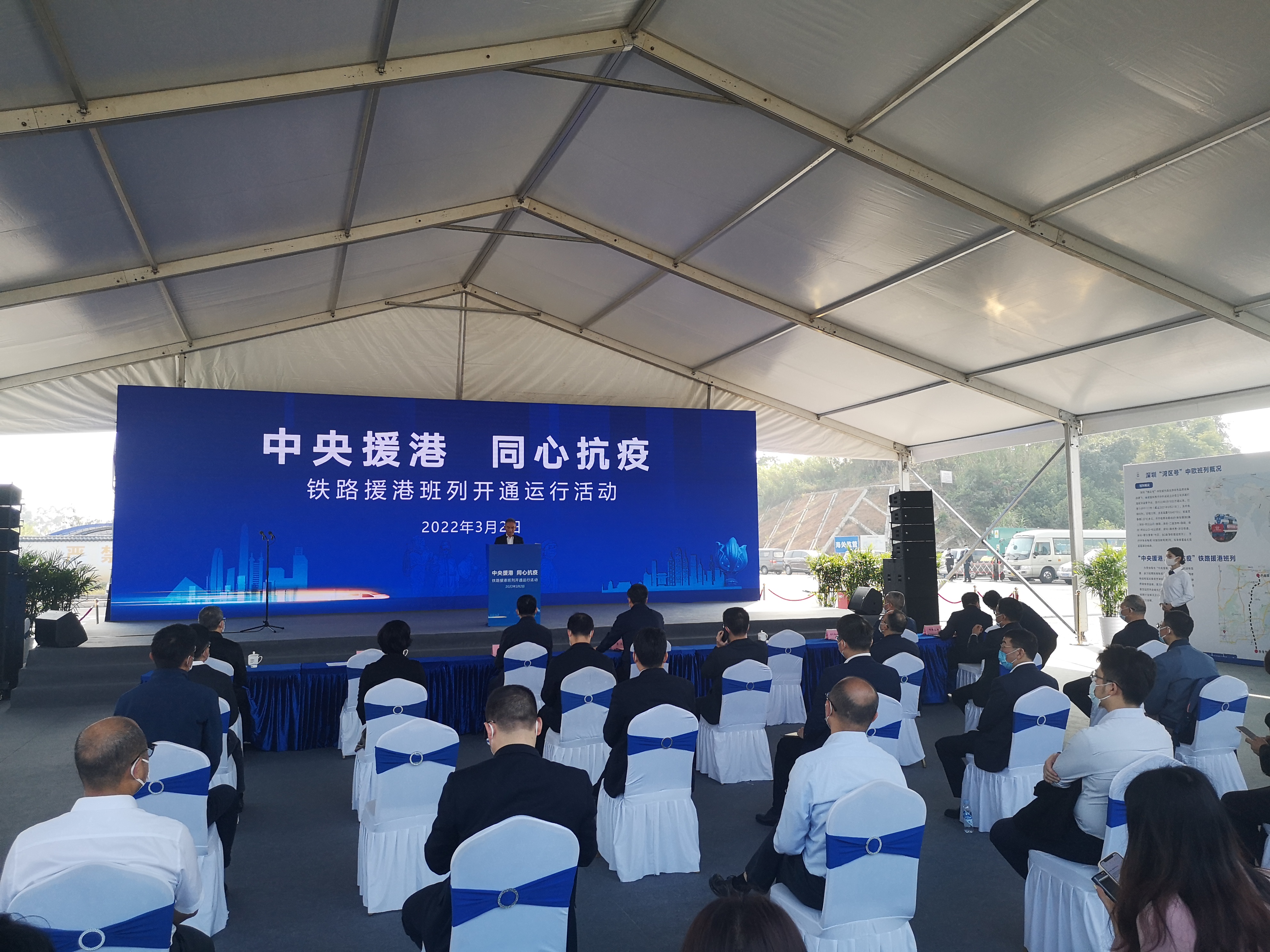 (大公文匯網 記者 石華)「中央援港、同心抗疫,鐵路援港班列正式開通。」2日上午9時28分,隨着深圳市市長覃偉中的宣布,首趟鐵路援港班列從深圳平湖南國家物流樞紐開出。